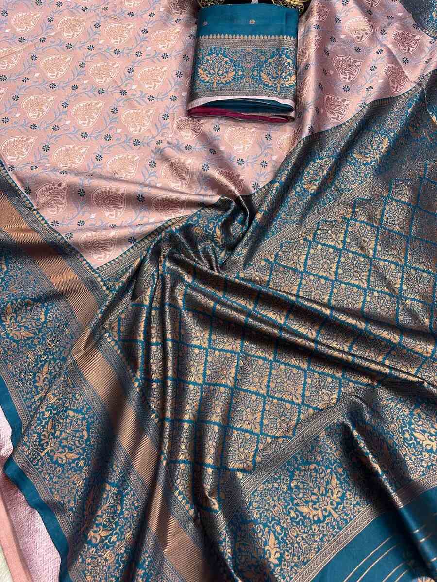 MODERN LICHI SILK ORGANIC BANARASI SAREE WITH UNSTITCHED BLOUSE BABY PINK