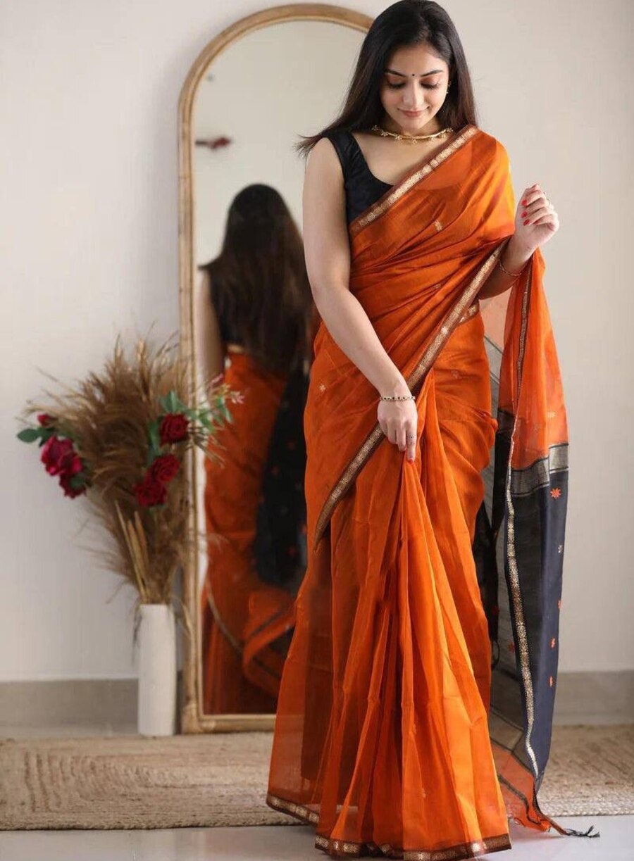 MODERN LINEN WEAVING WORK SAREE WITH UNSTITCHED BLOUSE ORANGE