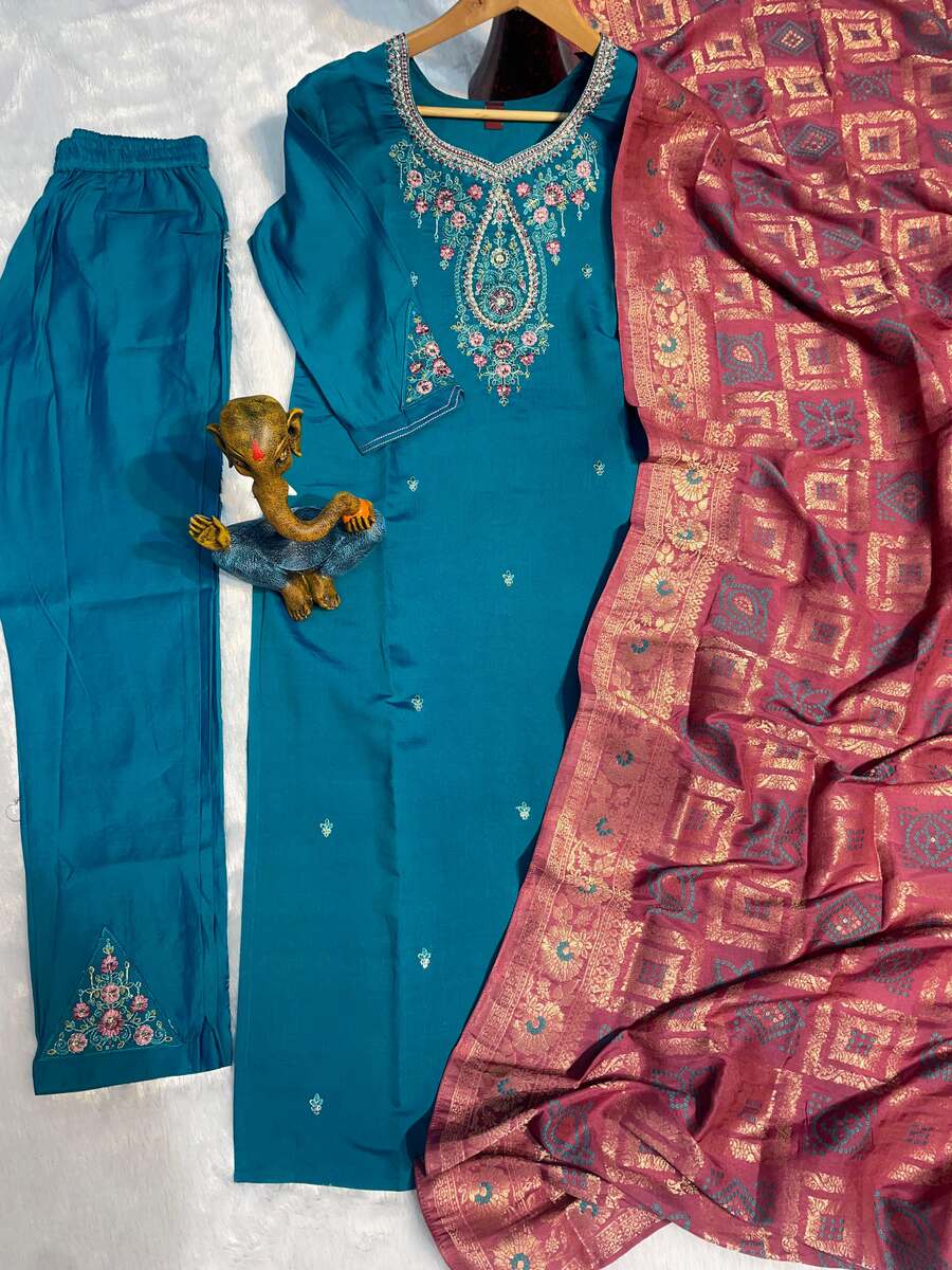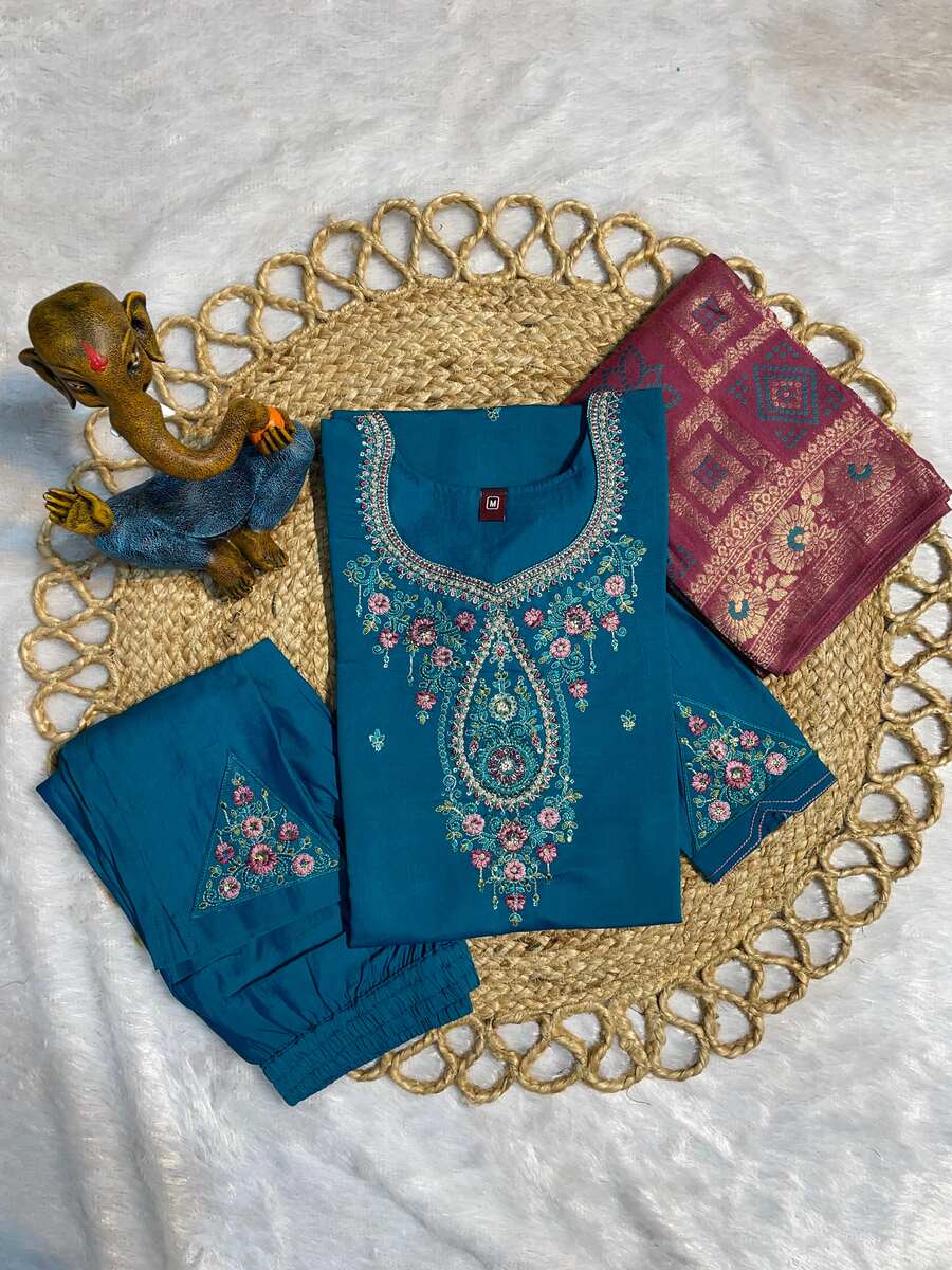 MODERN MARINA SILK MULTI EMBROIDERY THREAD, WITH HAND WORK TOP BOTTOM WITH DUPATTA BLUE