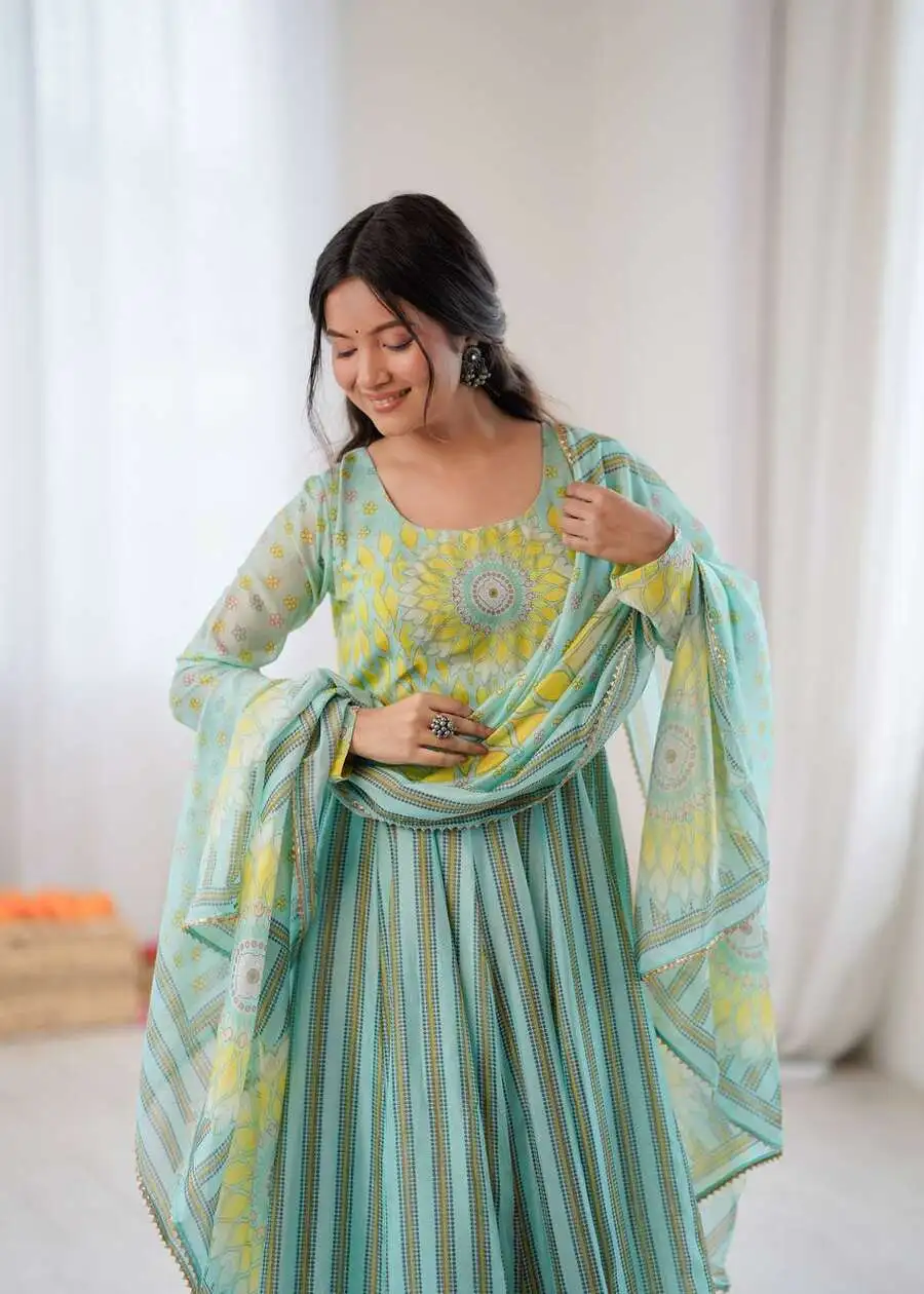 MODERN ORGANZA FLORAL PRINT WORK GOWN BOTTOM WITH DUPATTA ORANZA
