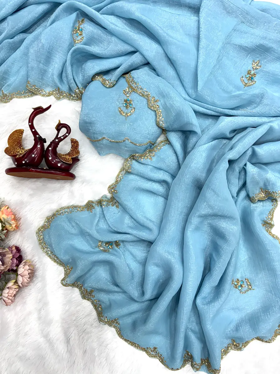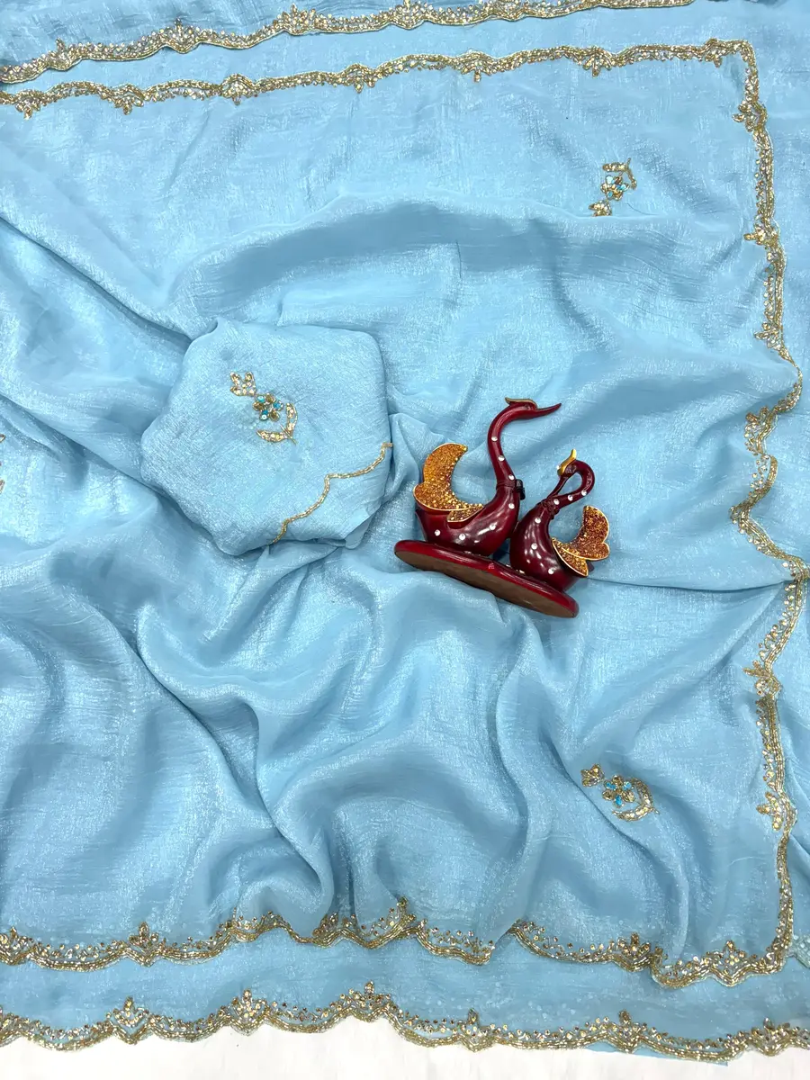 MODERN PIXEL CRUSH CUT DANA AND DIAMOND HAND WORK SAREE WITH UNSTITCHED BLOUSE SKY