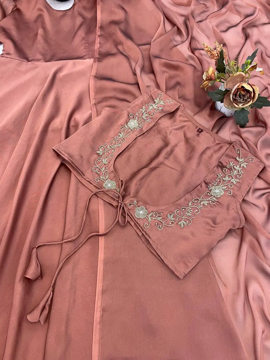 GOWN FABRIC :GEORGEETE WITH EMBROIDERY DESIGN WORK