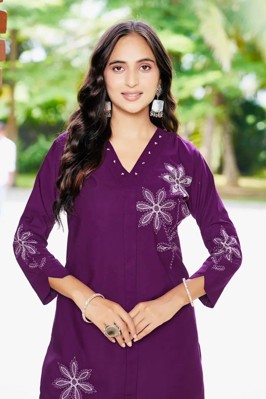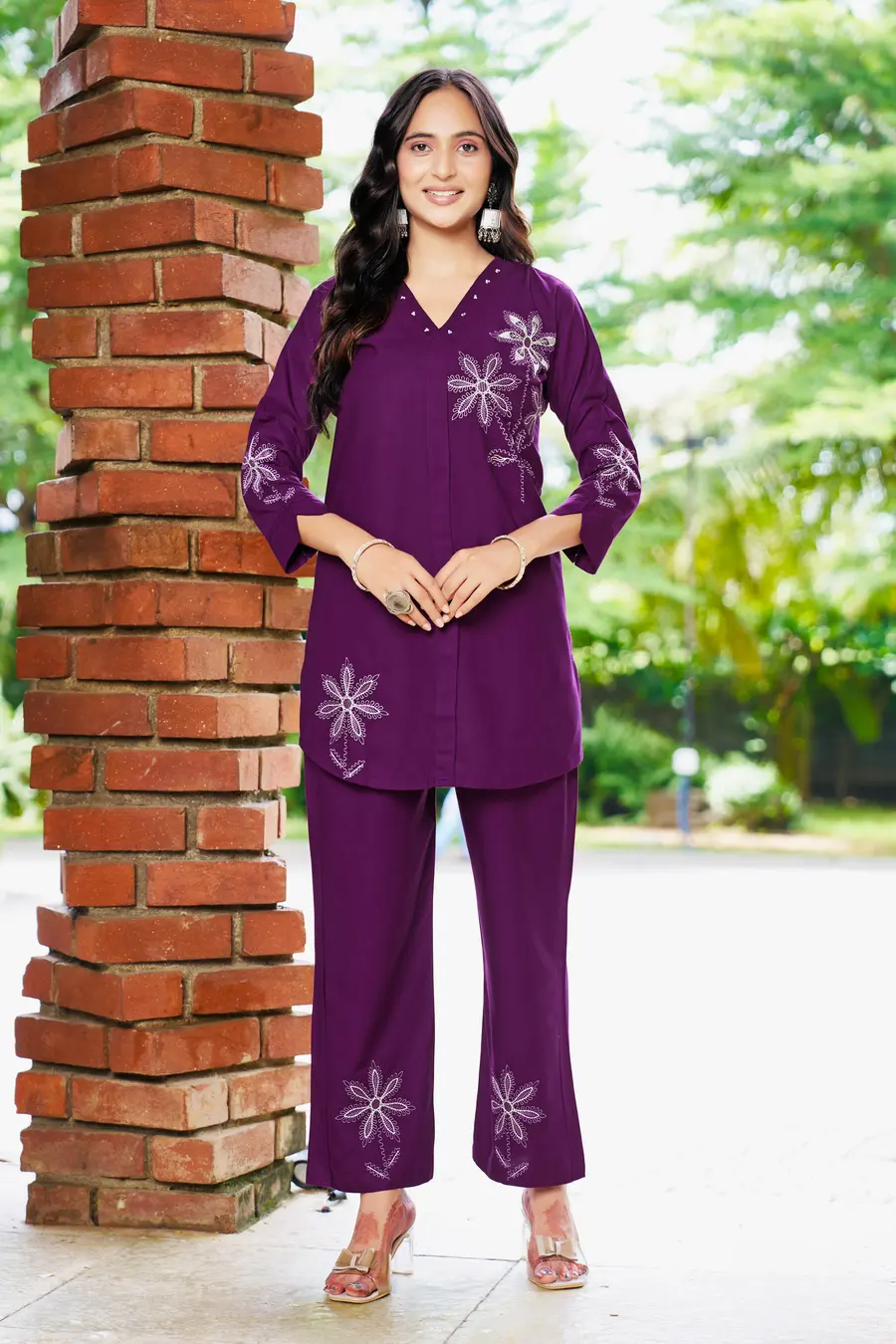 MODERN RAYON MULTI EMBROIDERY THREAD WORK CO-ORD SET PURPLE