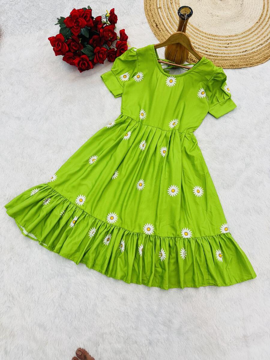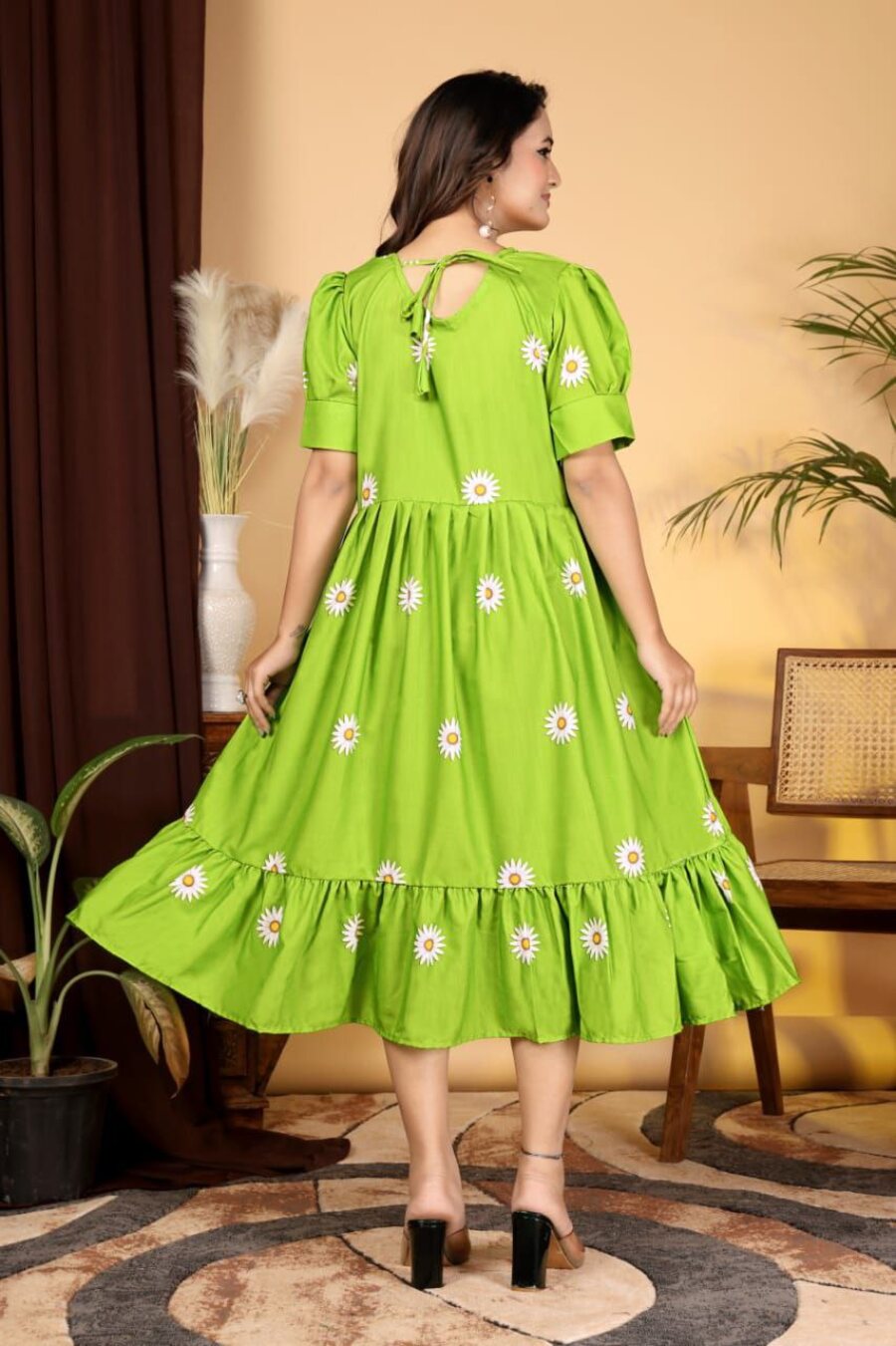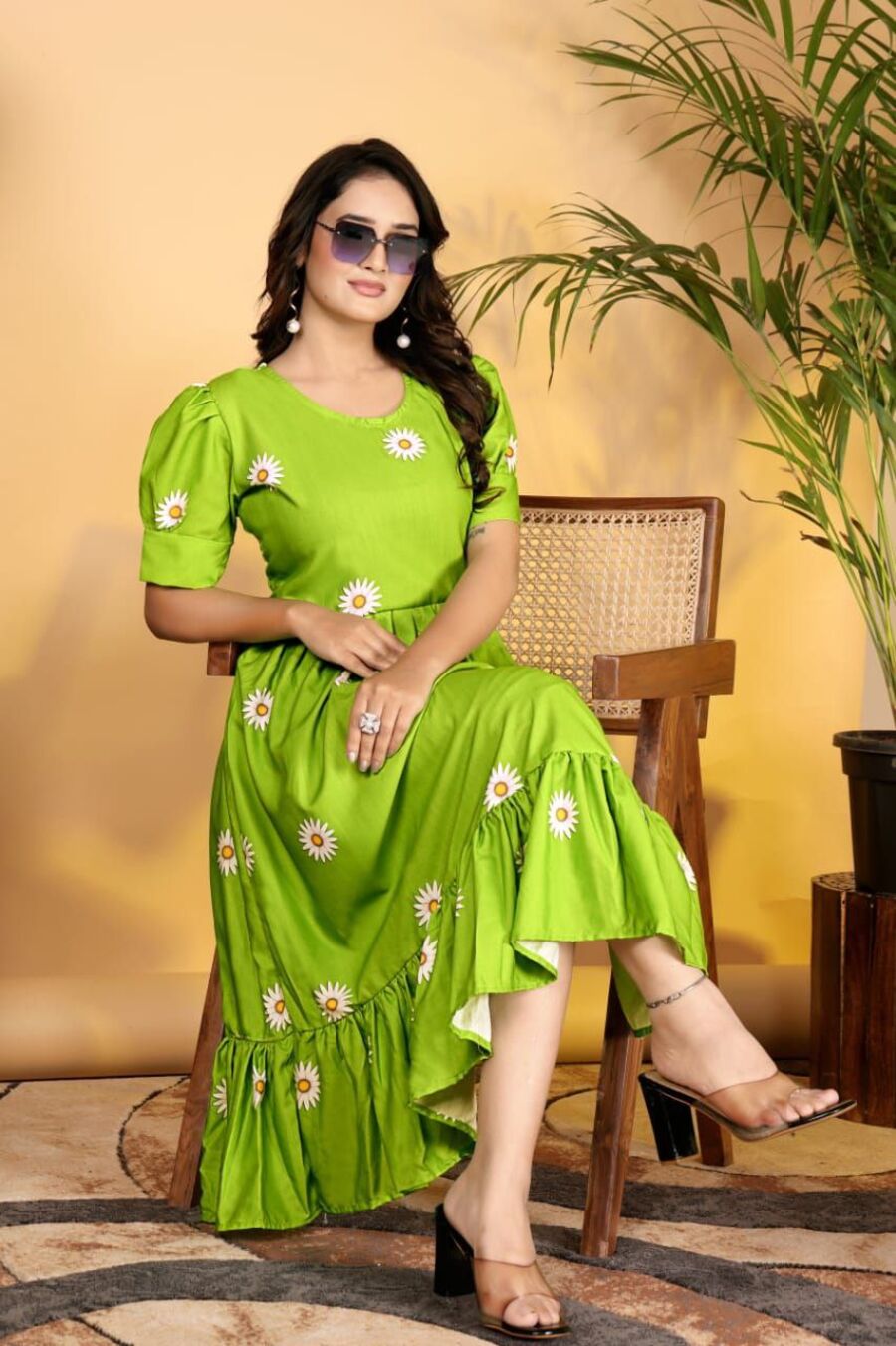 MODERN RAYON SLUB PRINTED WORK ONE PIECE PARROT GREEN
