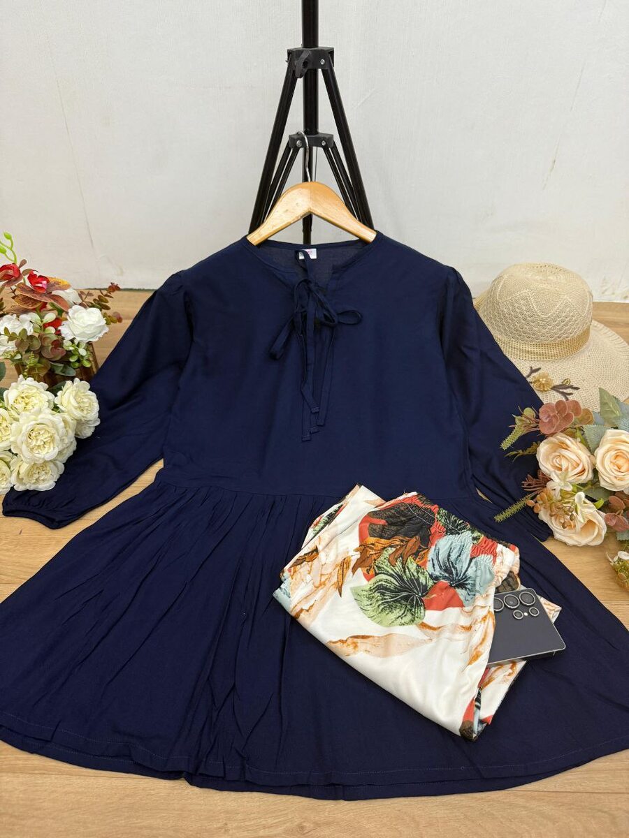 MODERN RAYON TOP WITH LYCRA DIGITAL PRINTED PALAZZO NAVY BLUE