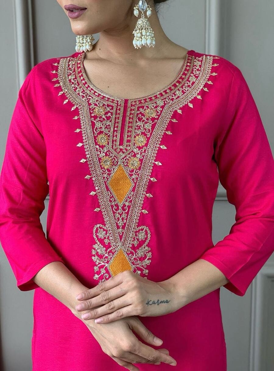 KURTI- COTTON WITH EMBROIDERY WORK