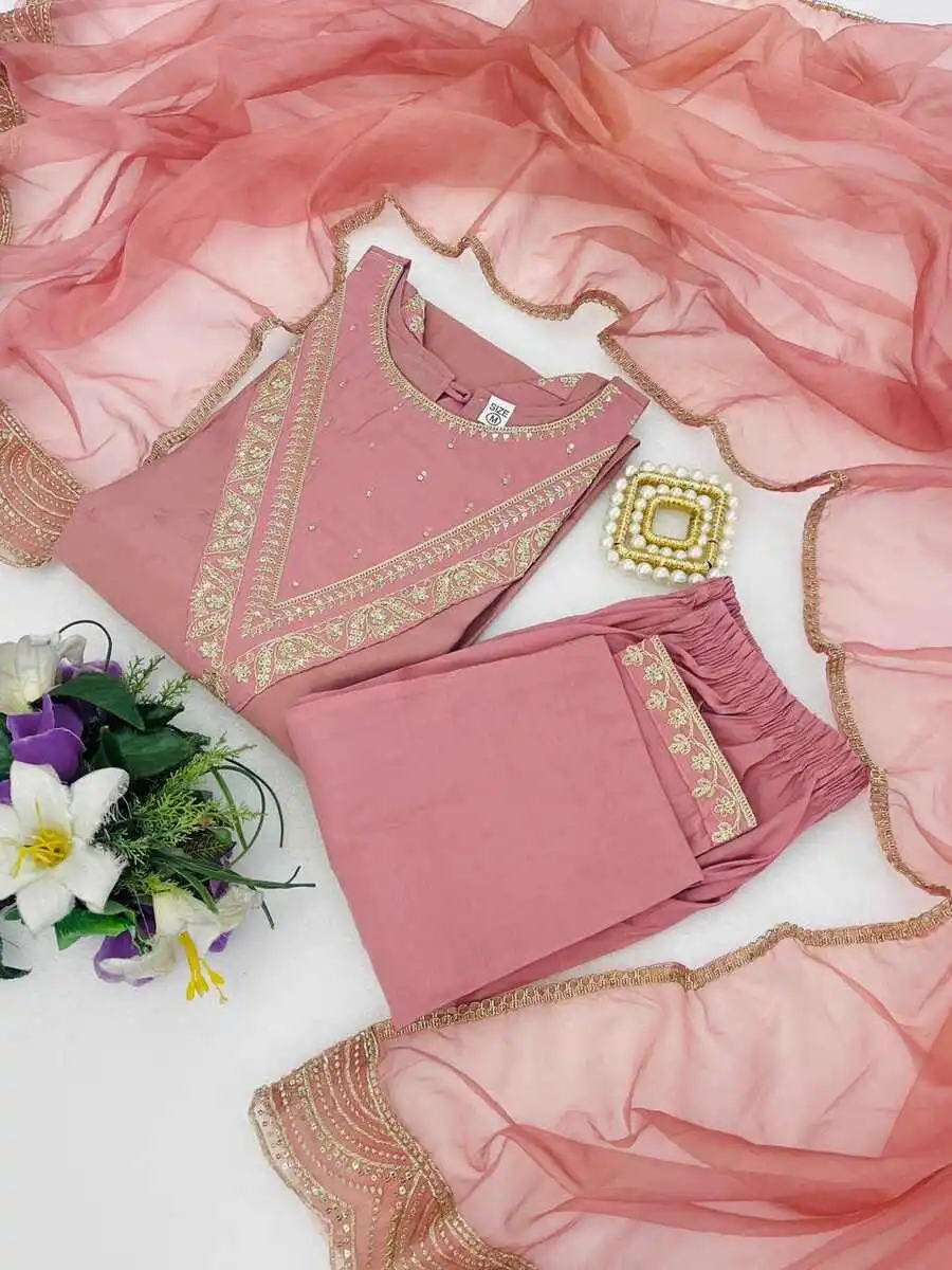 MODERN ROMAN EMBROIDERY WORK TOP BOTTOM WITH DUPATTA BABY PINK