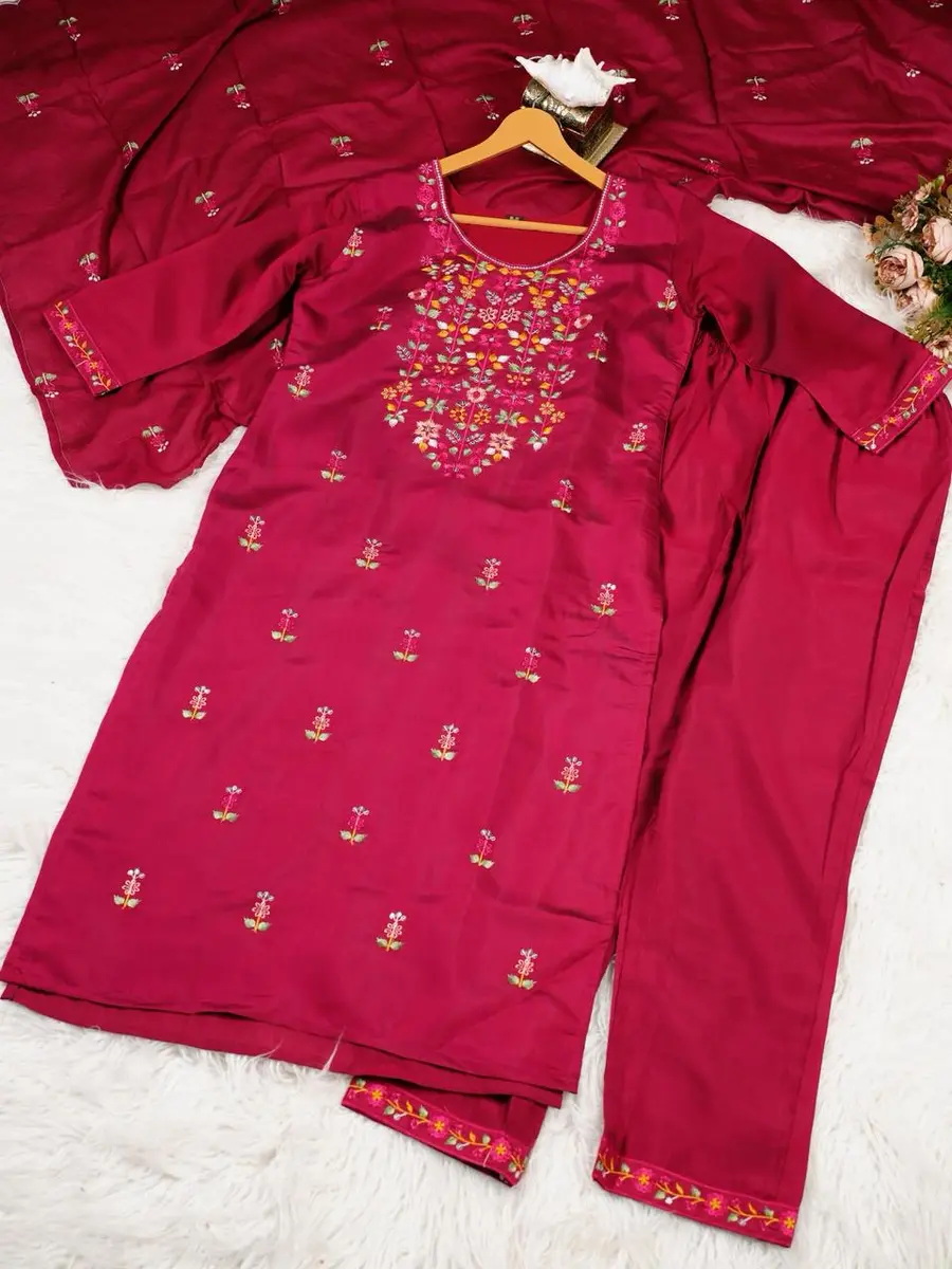 MODERN ROMAN EMBROIDERY WORK TOP BOTTOM WITH DUPATTA PINK