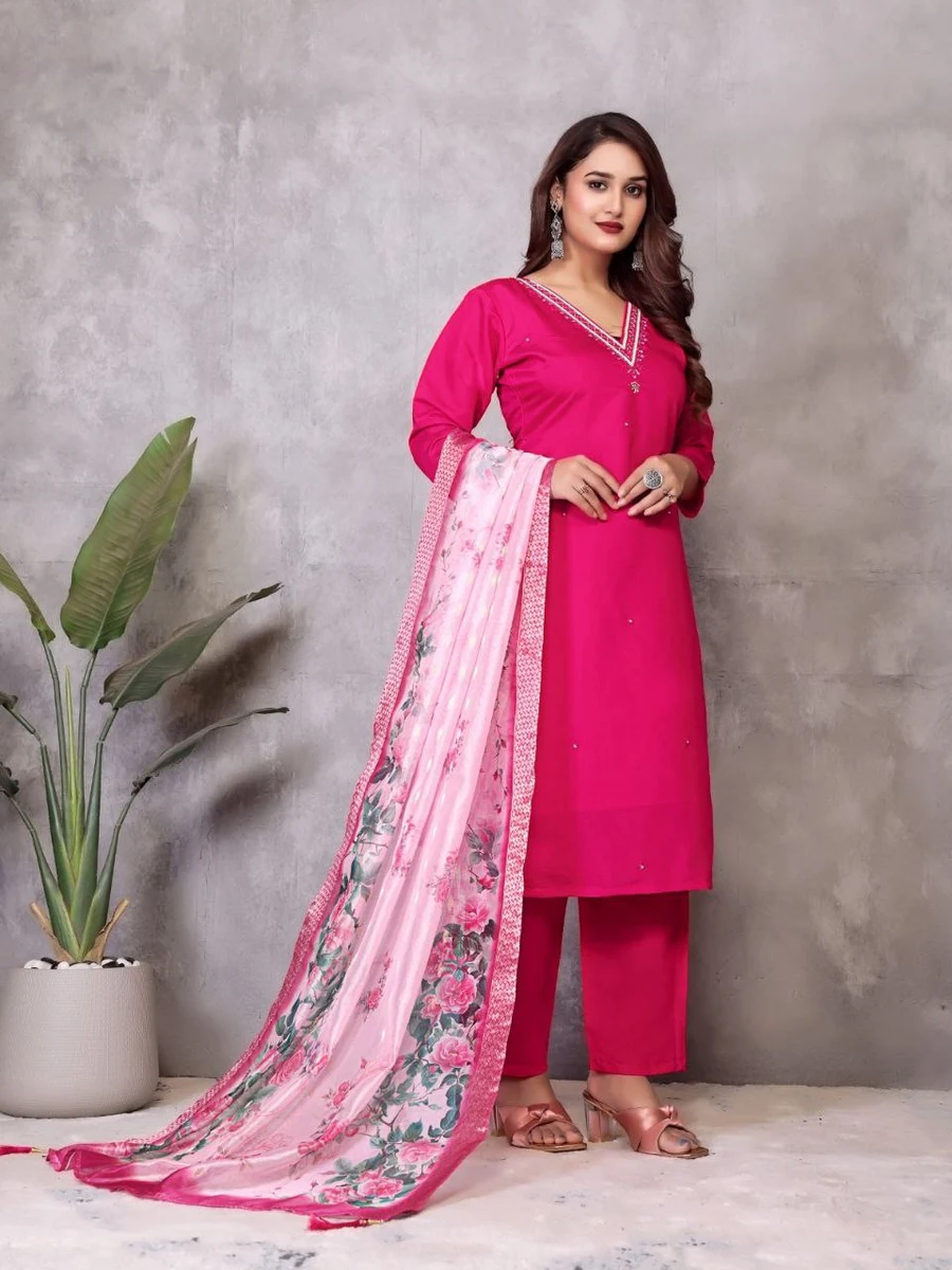 MODERN ROMAN SILK HANDWORK TOP BOTTOM WITH DUPATTA RANI