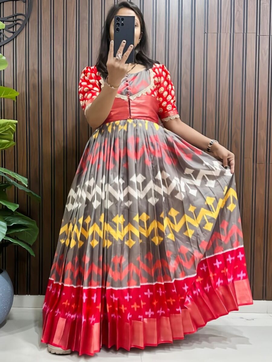 GOWN FABRIC :- SOFT DOLA SILK WITH CONTRAST ZARI PATTA