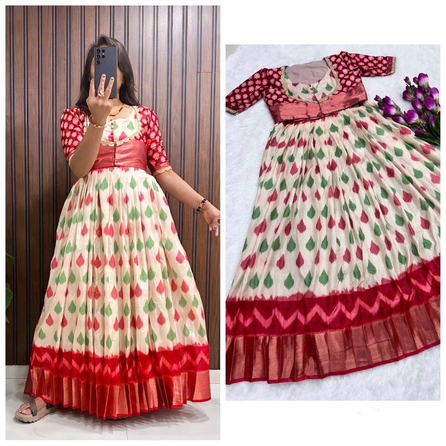 GOWN FABRIC :- SOFT DOLA SILK WITH CONTRAST ZARI PATTA
