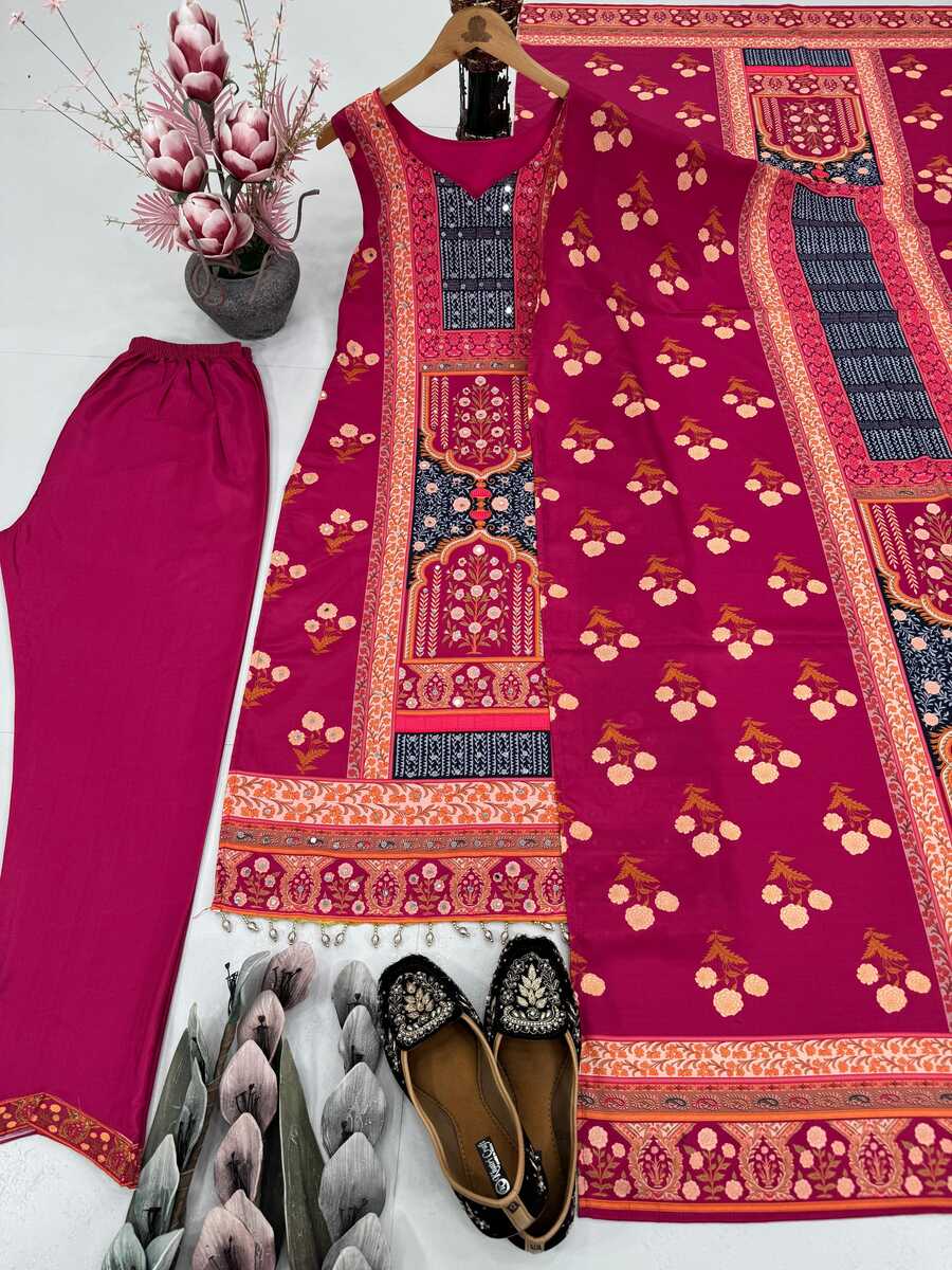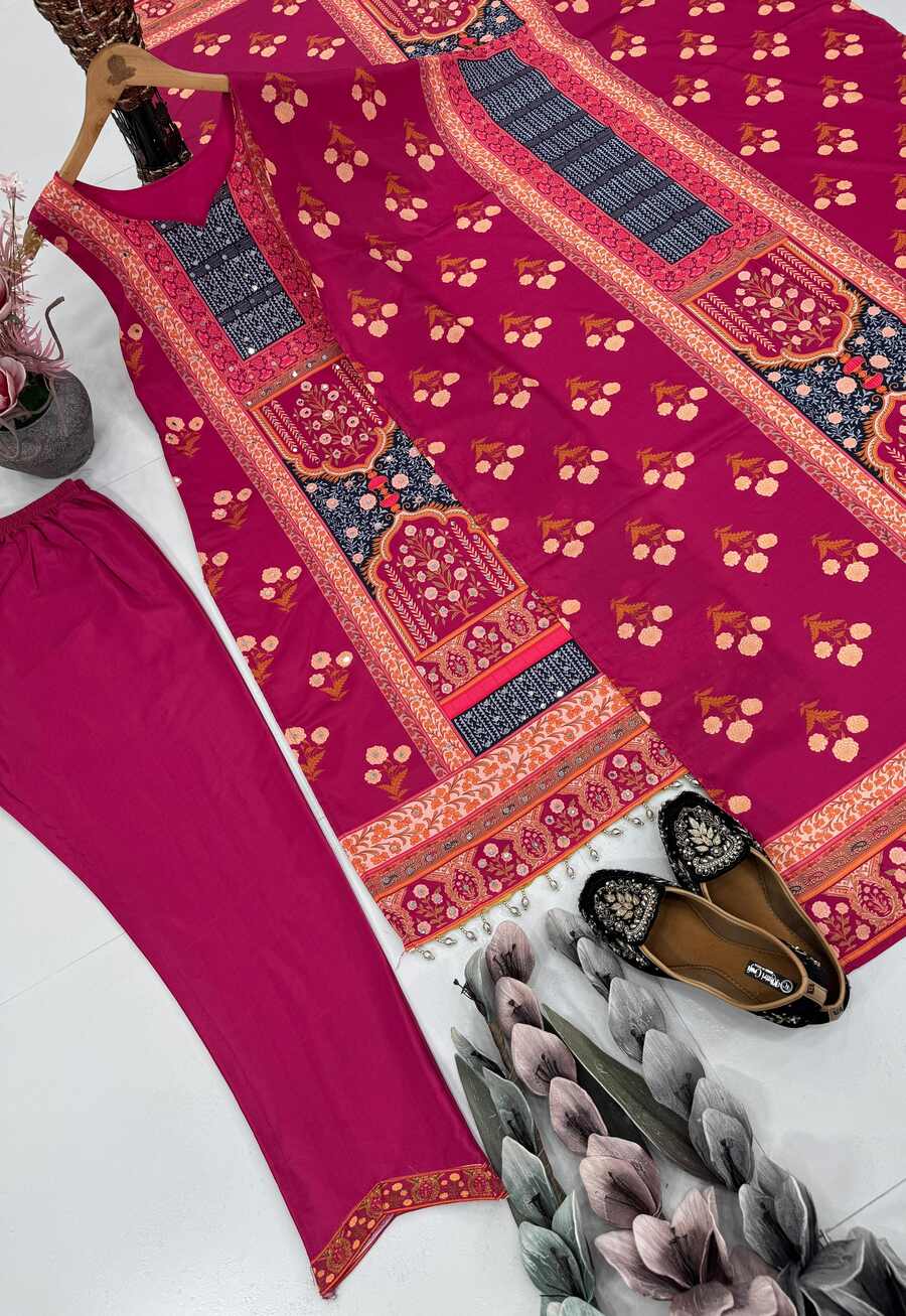 MODERN SILK DIGITAL PRINT WITH REAL MIRROR HAND WORK AND FANCY LACE WORK TOP BOTTOM WITH DUPATTA RANI