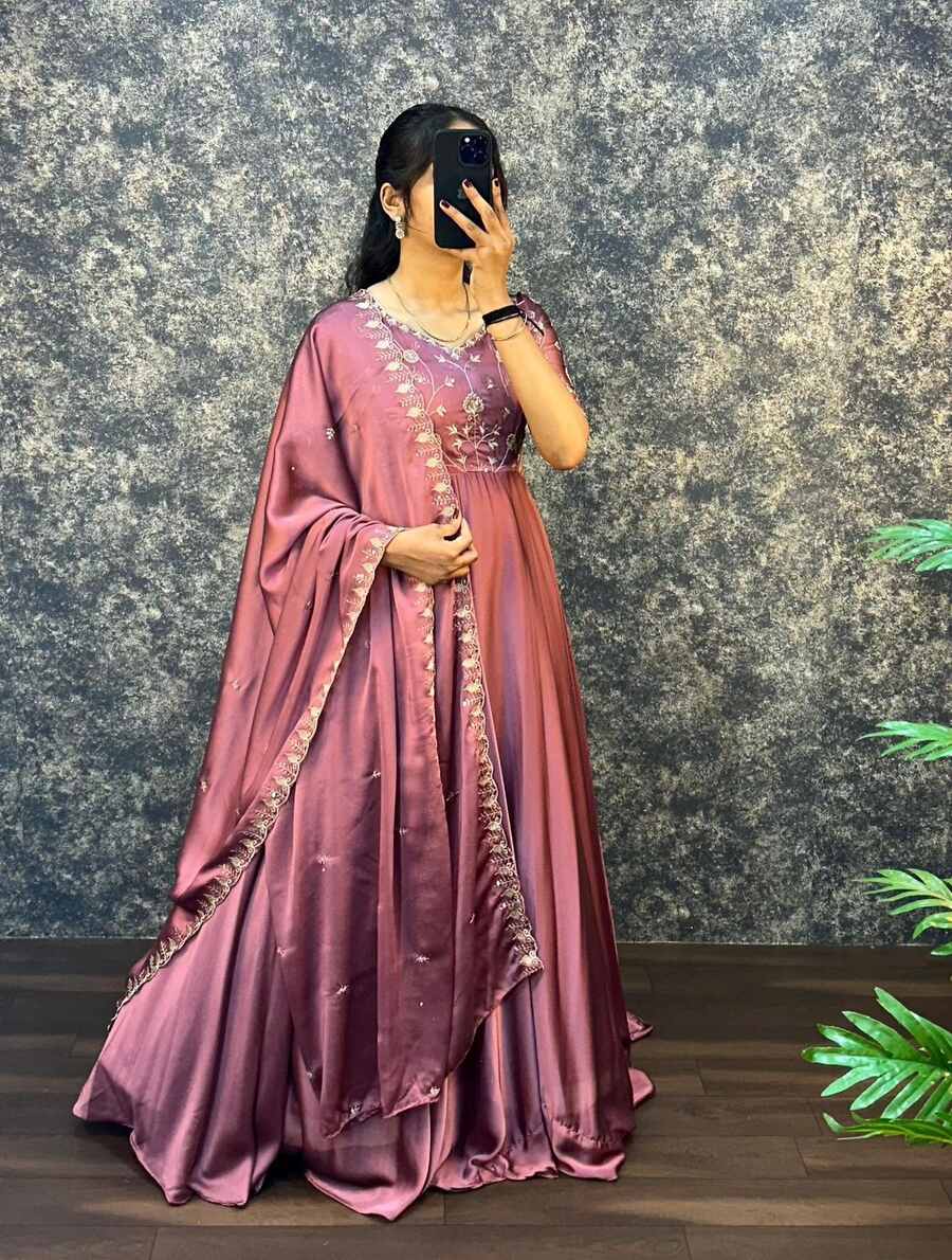 MODERN SILK EMBROIDERY WORK GOWN WITH DUPATTA PINK