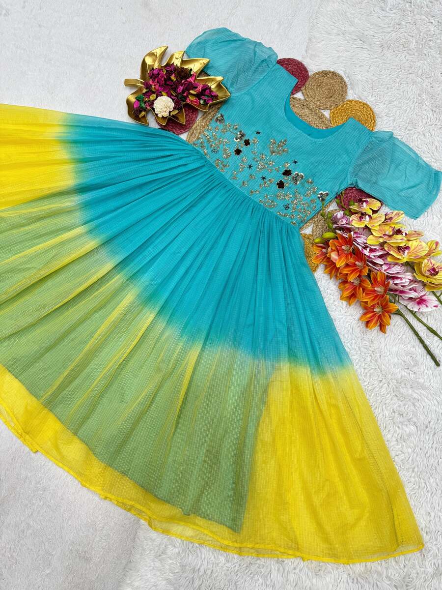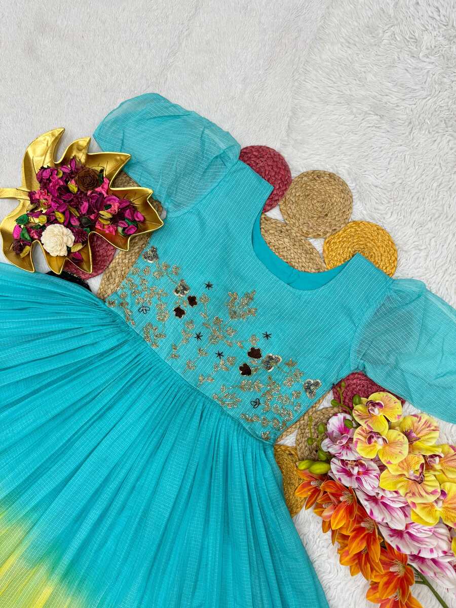 MODERN SOFT KOTA CHECKS MAGGAM WORK ONE PIECE SKY