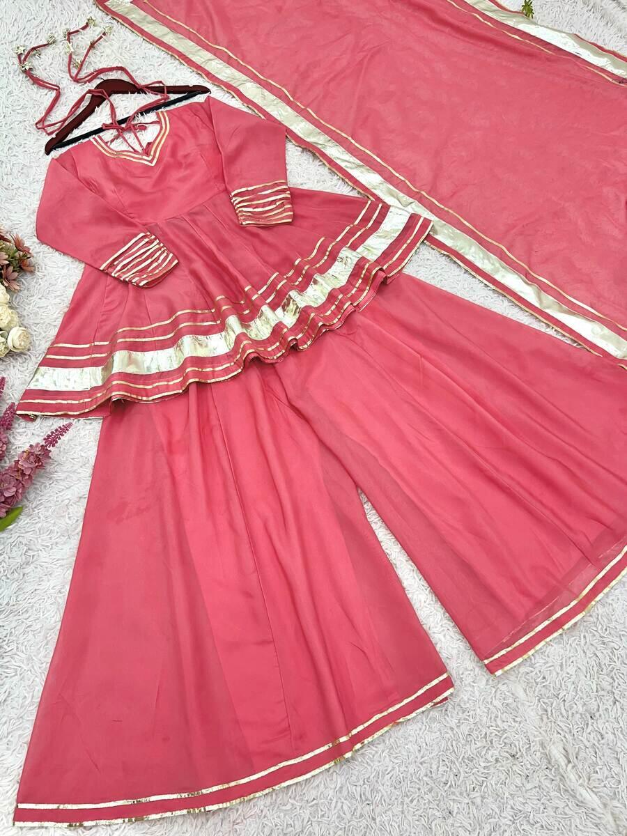 MODERN TABBY ORGANZA LACE BORDER WORK TOP PALAZZO WITH DUPATTA BABY PINK