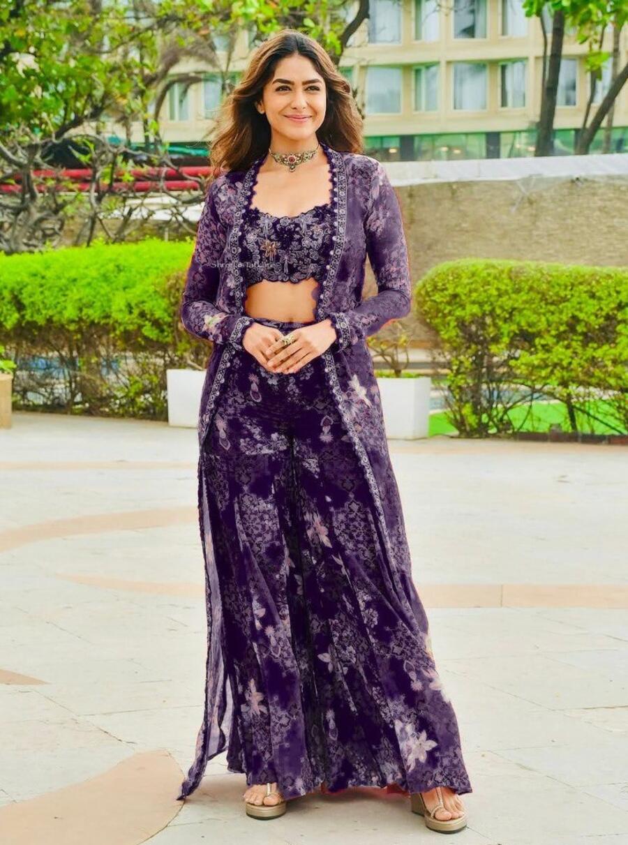 MODERN TABBY SILK THREAD WITH SEQUENCE WORK AND DIGITAL PRINT WORK BLOUSE SHARARA WITH SHRUG PURPLE