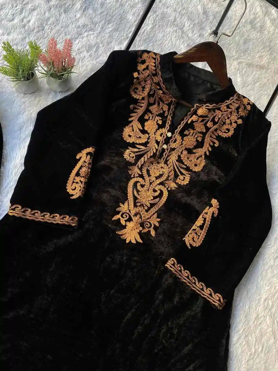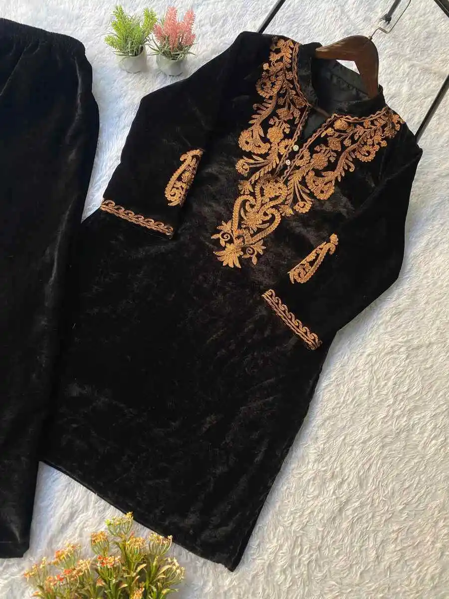 MODERN VELVET EMBROIDERY WORK CO-ORD SET BLACK