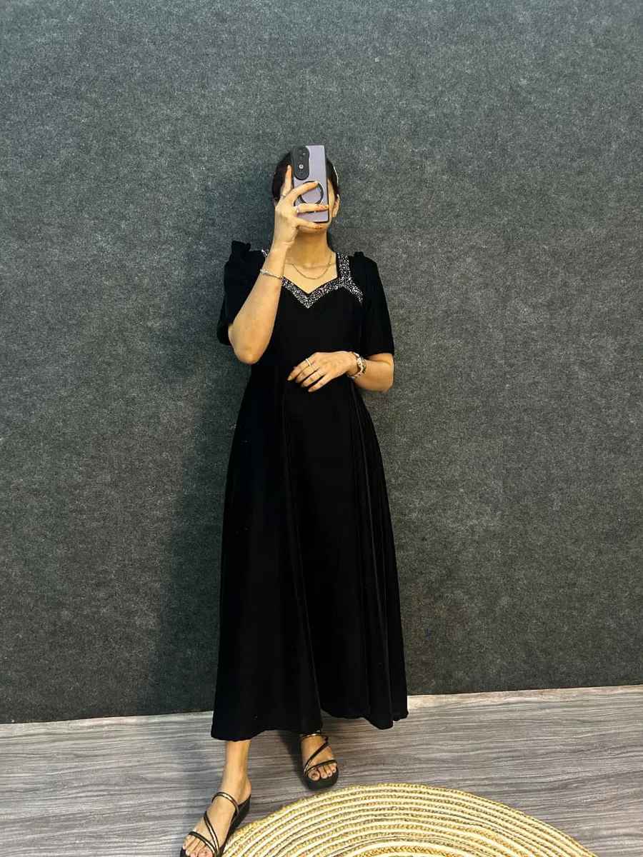 MODERN VELVET HAND WORK GOWN BLACK