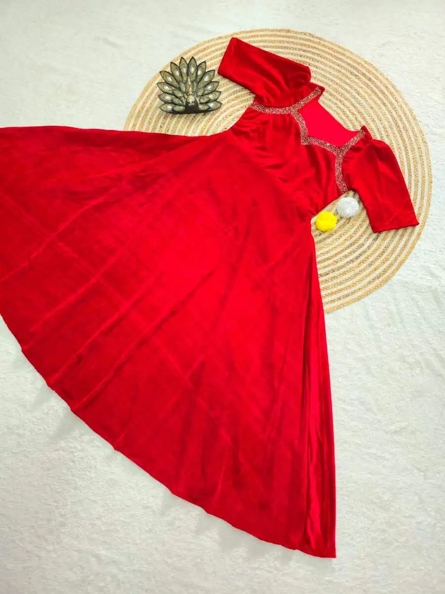 MODERN VELVET HAND WORK GOWN RED