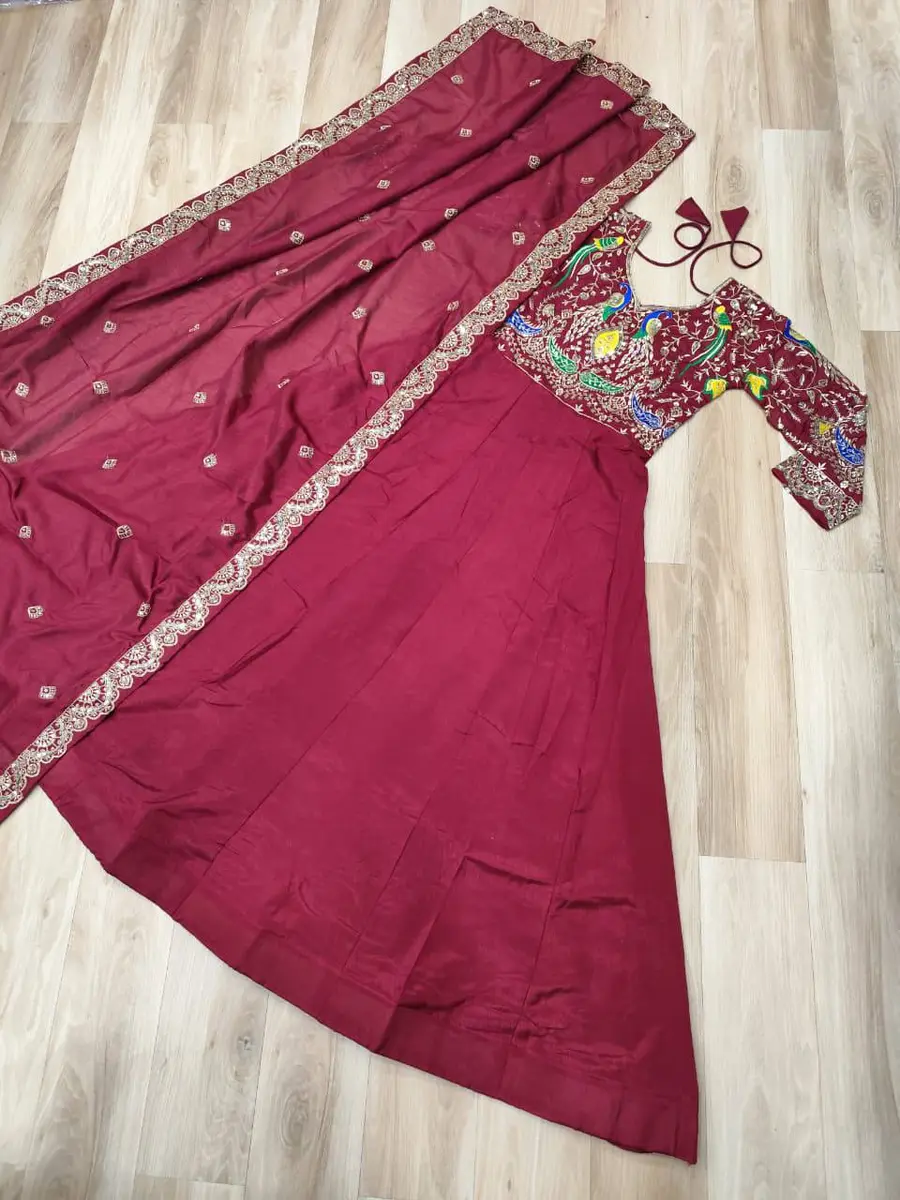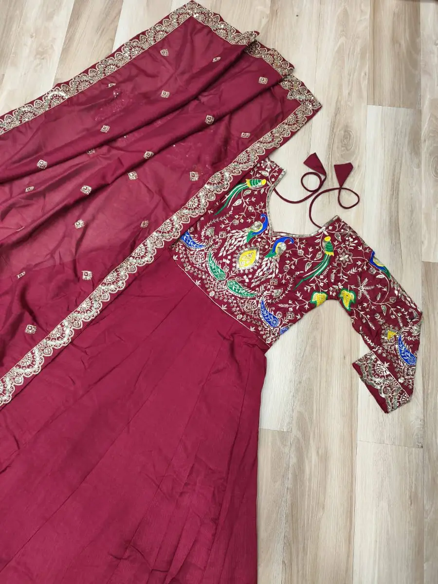 MODERN VICHITRA MULTI THREAD & ZARI EMBROIDERY WORK GOWN WITH DUPATTA MAROON
