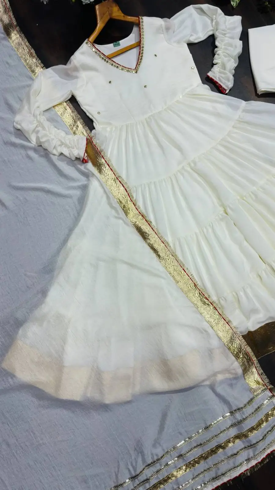 MODERN VICHITRA SILK SEQUENCE & THREAD AND GOLDEN LACE WORK GOWN BOTTOM WITH DUPATTA OFF WHITE
