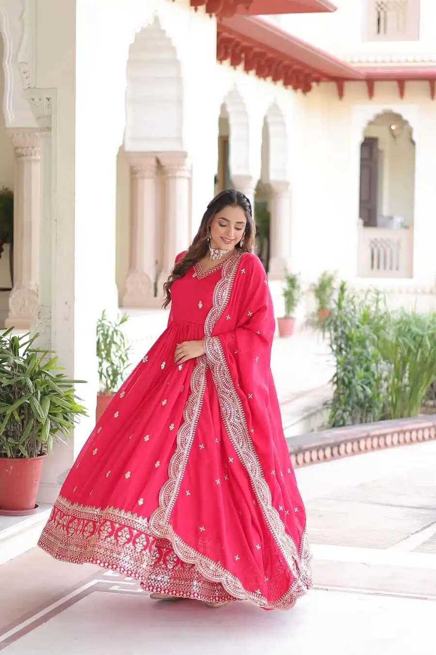 MODERN VICHITRA SILK SEQUENCE ZARI & EMBROIDERY WORK GOWN WITH DUPATTA RANI