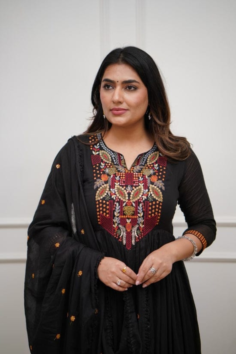 MODERN VISCOSE CHANDERI EMBROIDERY WORK TOP BOTTOM WITH DUPATTA BLACK