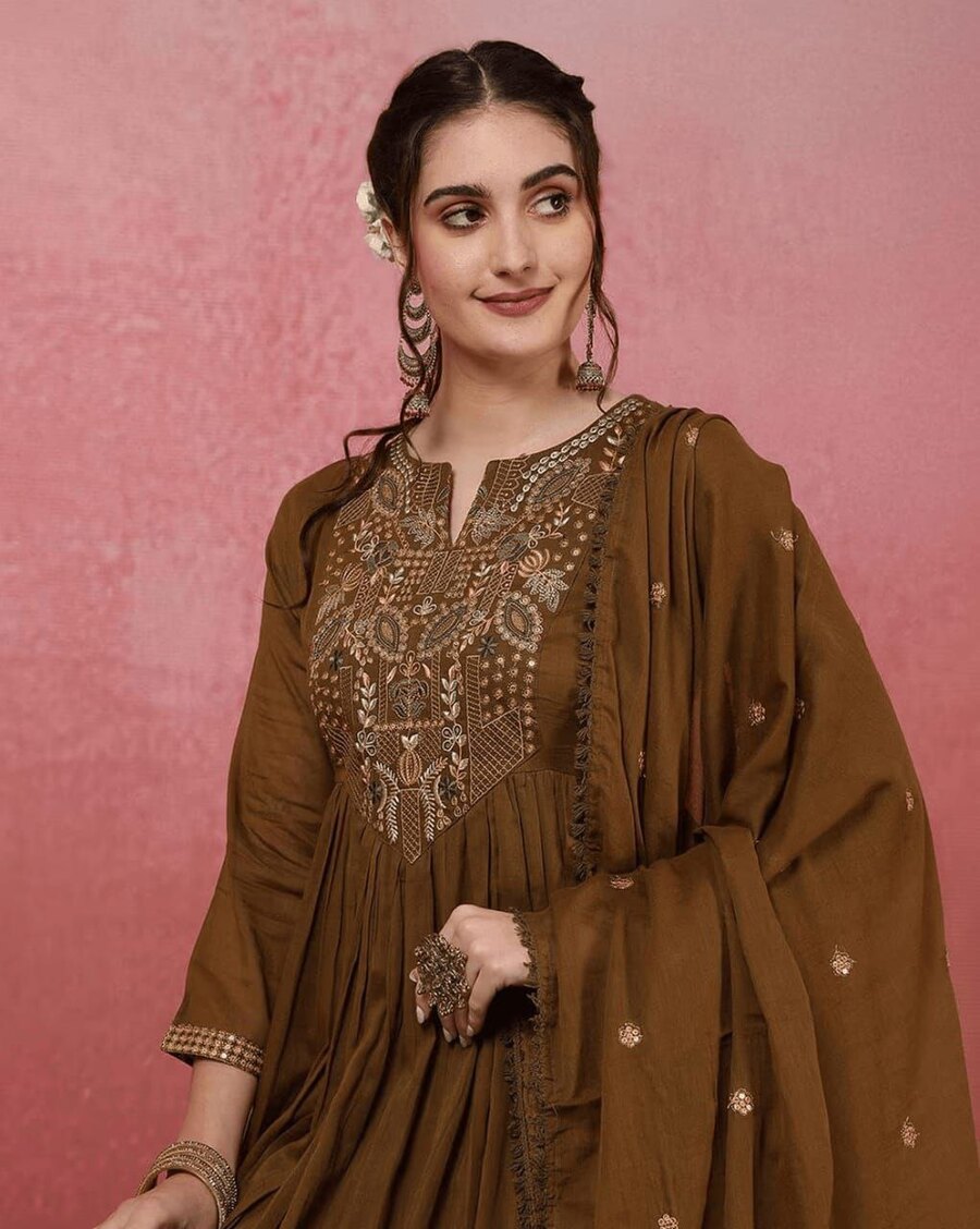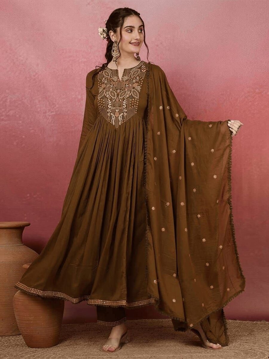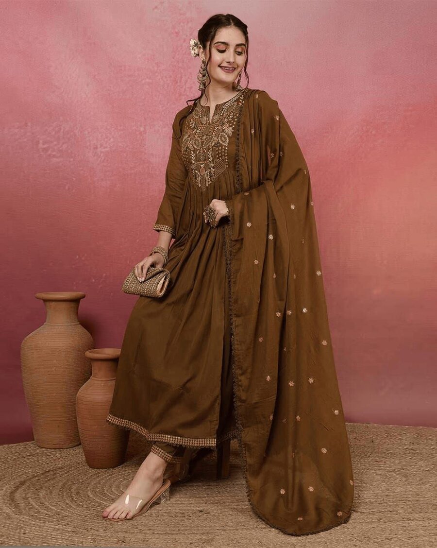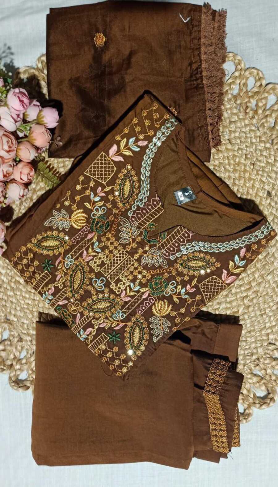 MODERN VISCOSE CHANDERI EMBROIDERY WORK TOP BOTTOM WITH DUPATTA MEHNDI