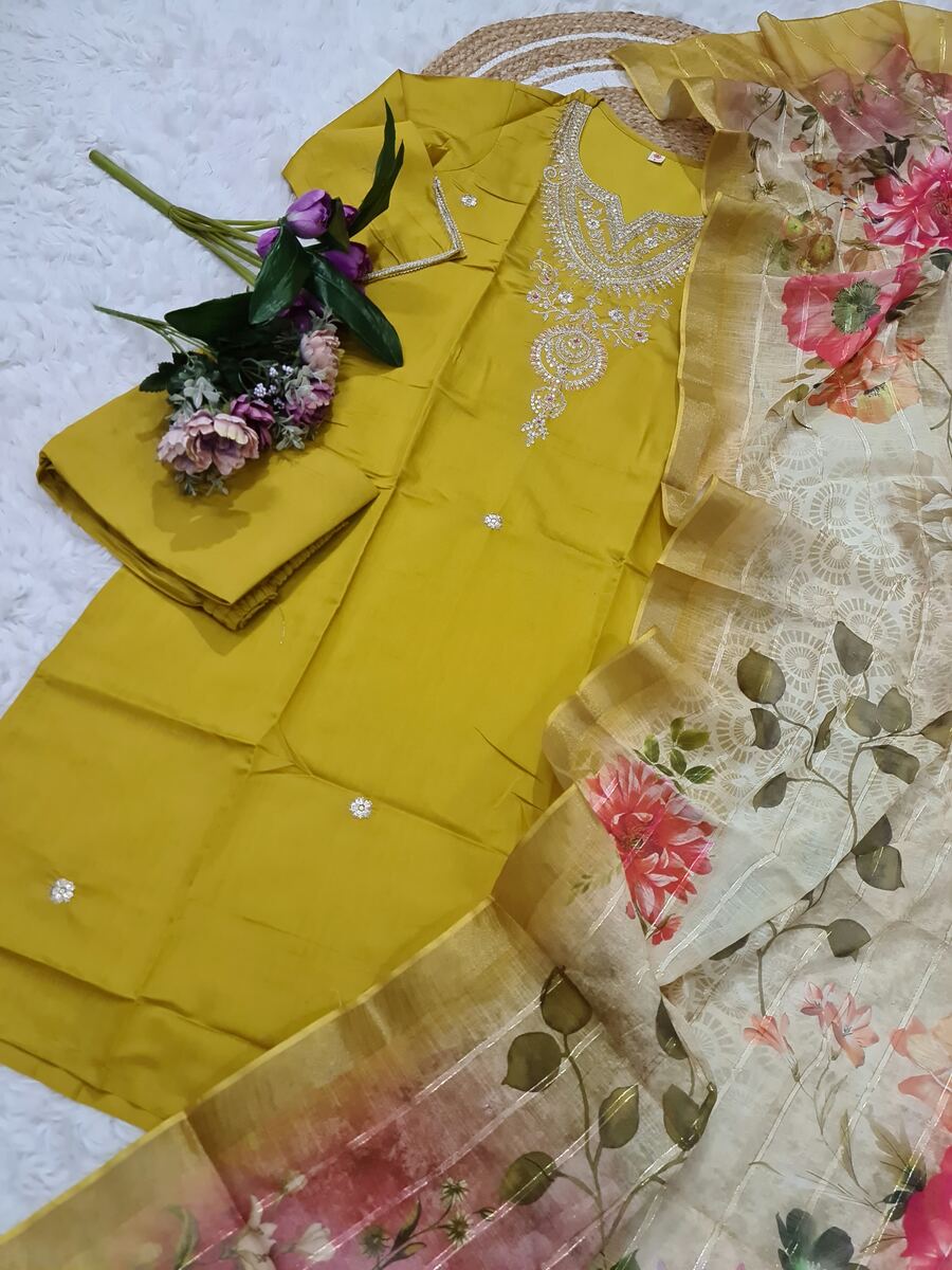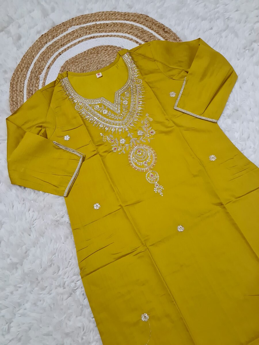 MODERN VISCOSE RAYON SEQUENCE EMBROIDERY WORK TOP BOTTOM WITH DUPATTA YELLOW