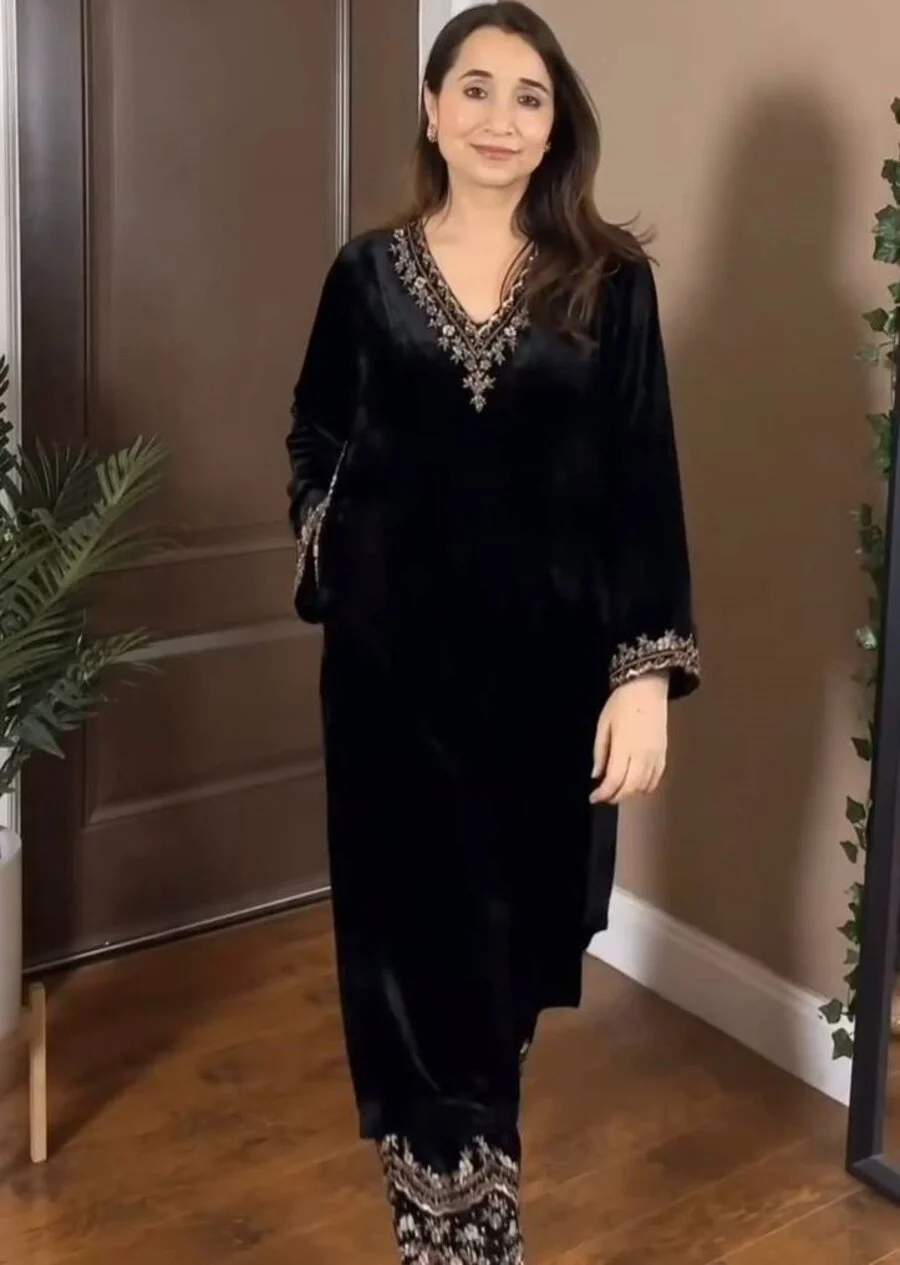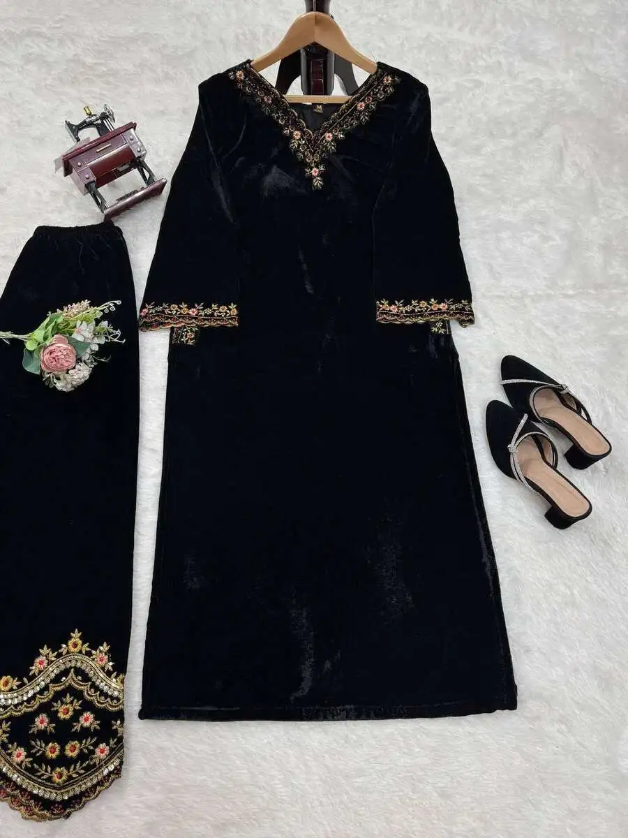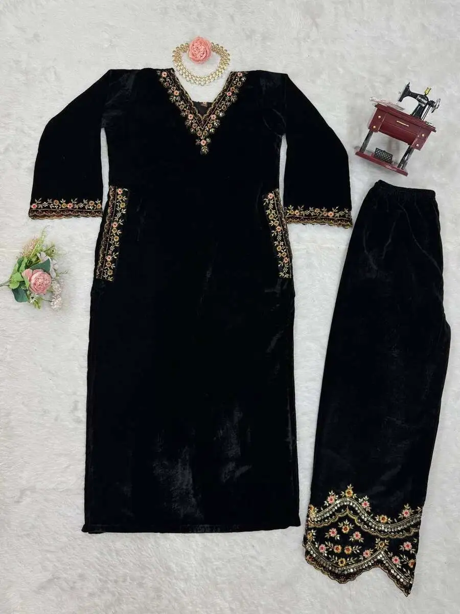 MODERN VISCOSE VELVET THREAD WITH SEQUENCE WORK TOP PENT SET BLACK