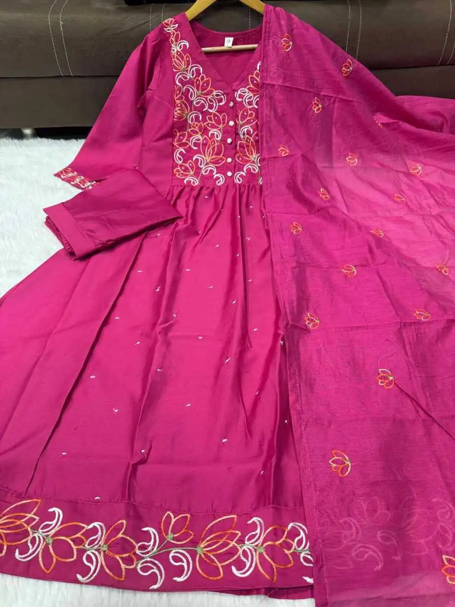 MOST PICKED CHANDERI EMBROIDERY WORK TOP BOTTOM WITH DUPATTA PINK