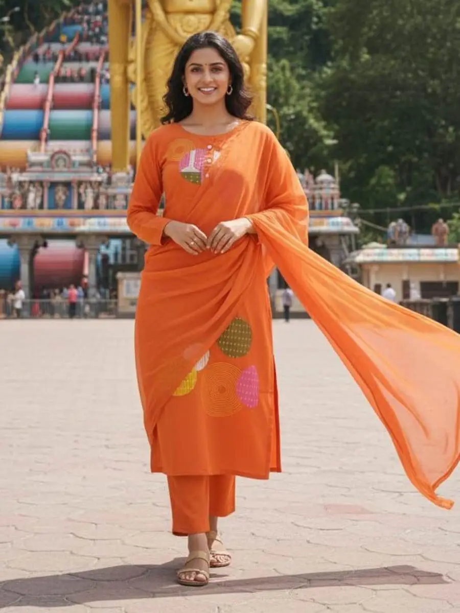 MOST PICKED COTTON BLEND EMBROIDERY WORK TOP BOTTOM WITH DUPATTA ORANGE