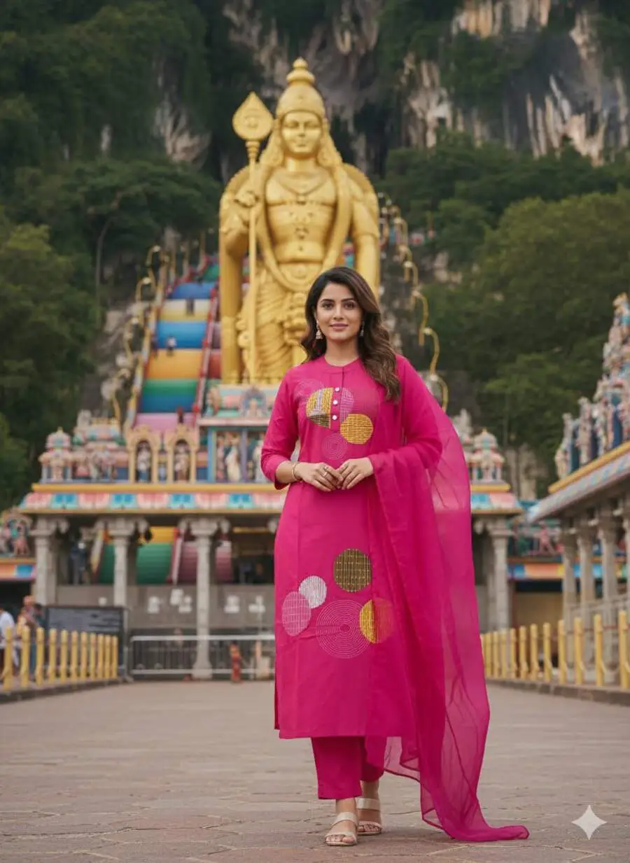 MOST PICKED COTTON BLEND EMBROIDERY WORK TOP BOTTOM WITH DUPATTA PINK