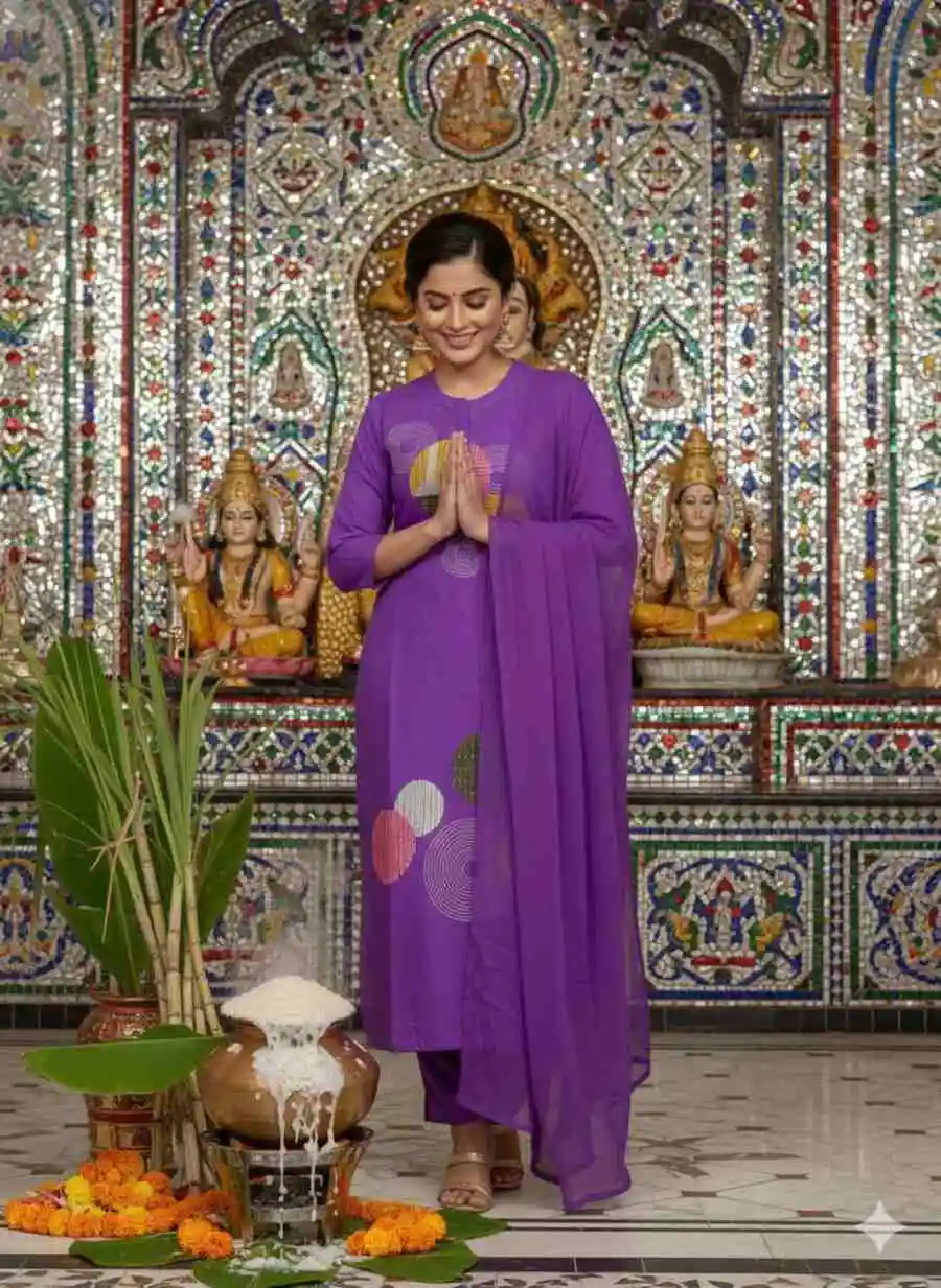MOST PICKED COTTON BLEND EMBROIDERY WORK TOP BOTTOM WITH DUPATTA PURPLE