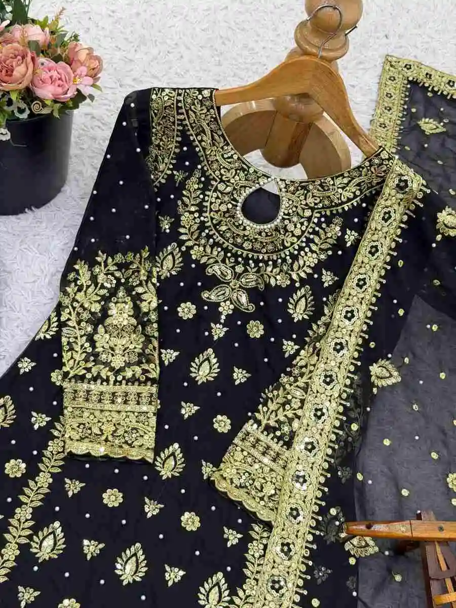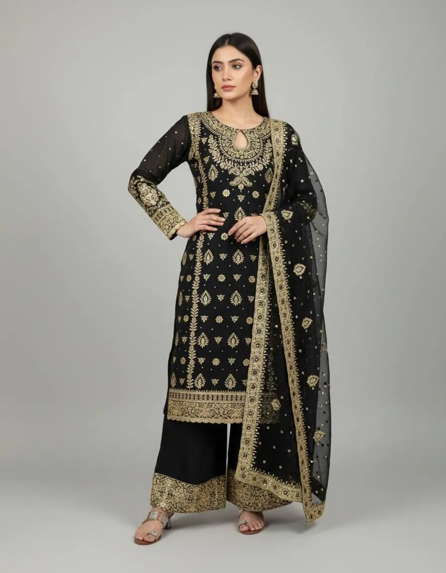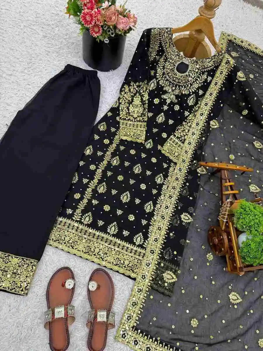 MOST PICKED GEORGETTE EMBROIDERY SEQUENCE WORK TOP PALAZZO WITH DUPATTA BLACK
