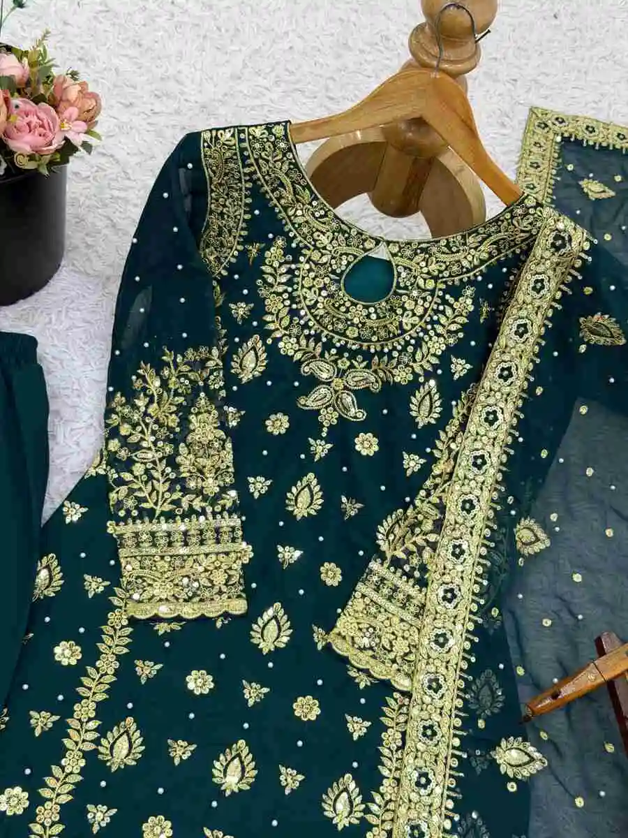 MOST PICKED GEORGETTE EMBROIDERY SEQUENCE WORK TOP PALAZZO WITH DUPATTA TEAL