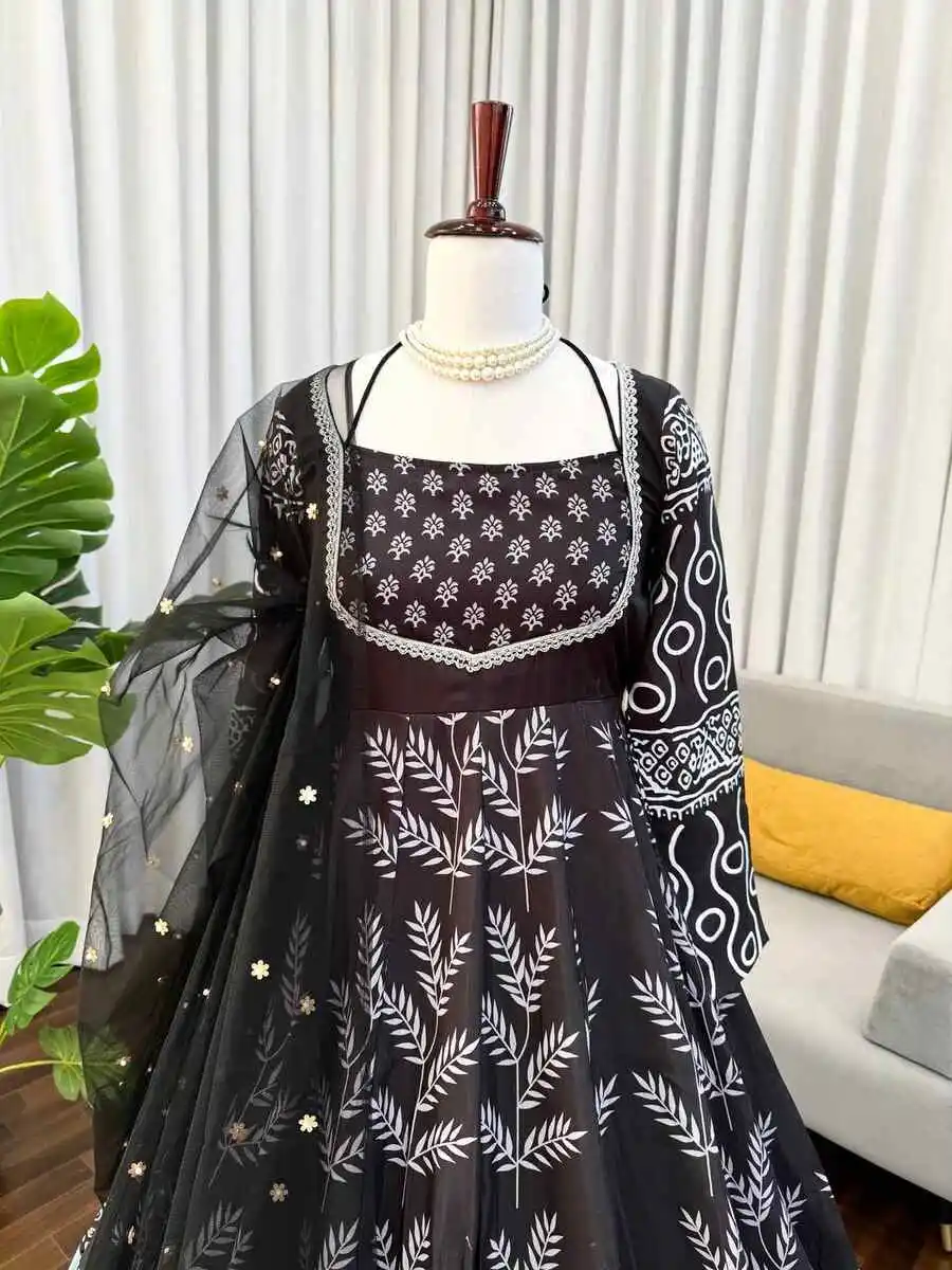 NATURAL CREPE SILK DIGITAL PRINT WORK GOWN BOTTOM WITH DUPATTA BLACK