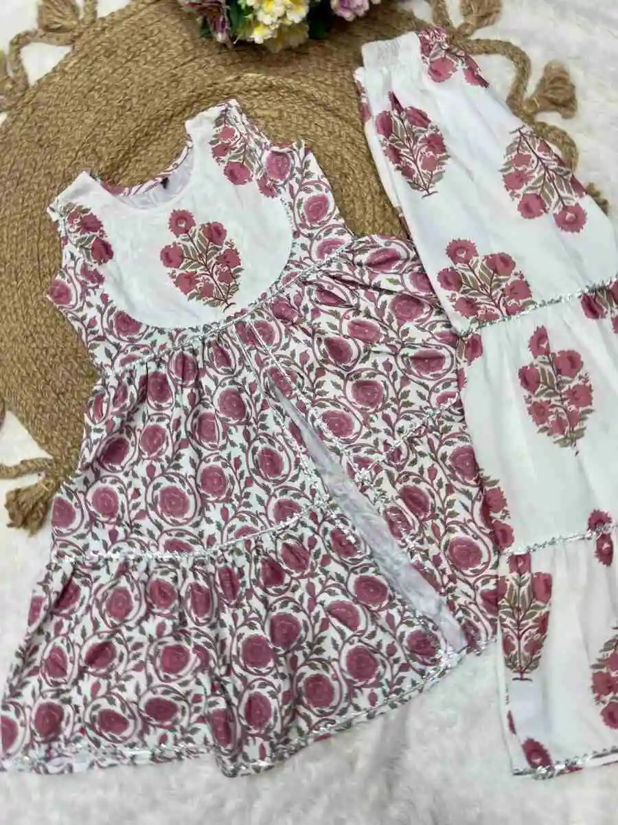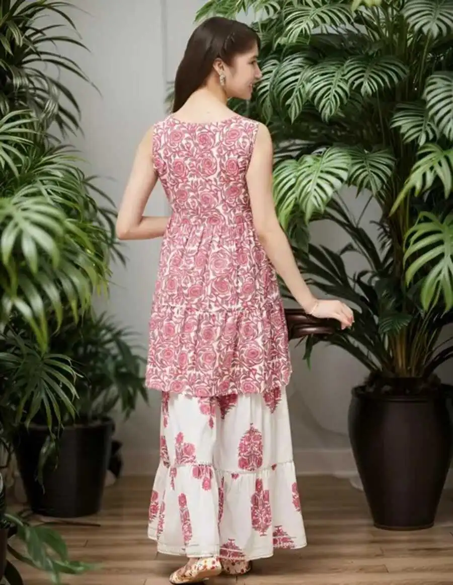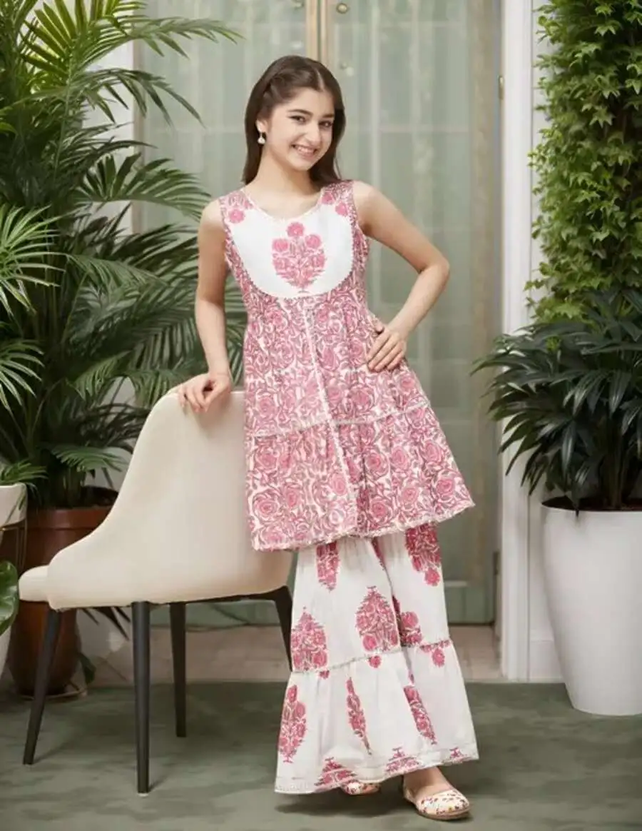 NEW ARRIVAL AB COTTON PRINTED WORK KID’S TOP SHARARA SET RED