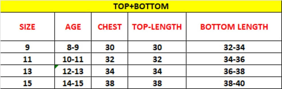 SIZE :- 3 YRS | 4 YRS | 5 YRS | 6 YRS | 7 YRS | 8 YRS | 9 YRS | 10 YRS | 11 YRS | 12 YRS | 13 YRS | 14 YRS | 15 YRS | (REFER TO SIZE CHART)