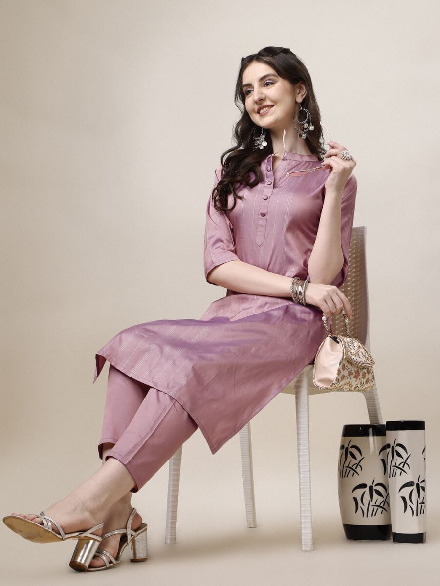 NEW ARRIVAL ART SILK LINING WORK TOP PENT SET PEACH