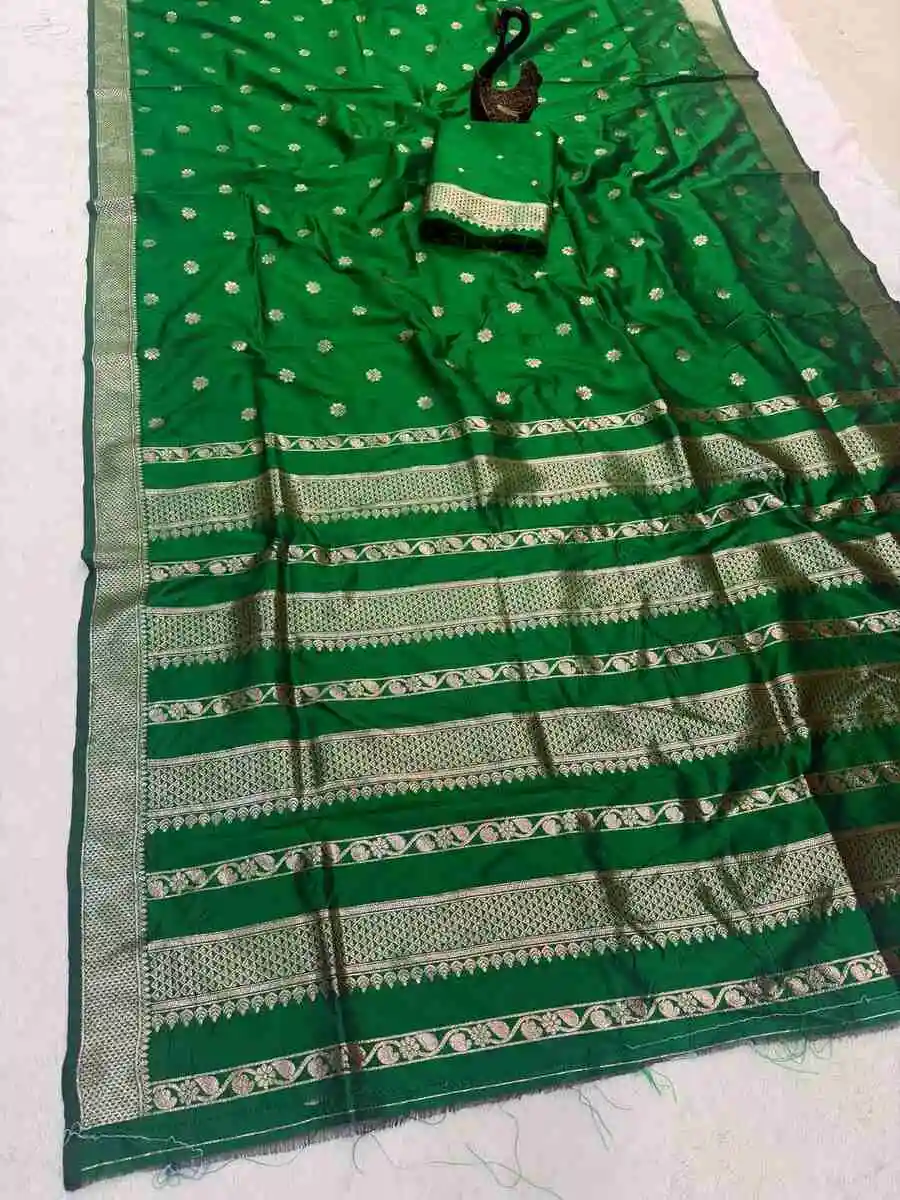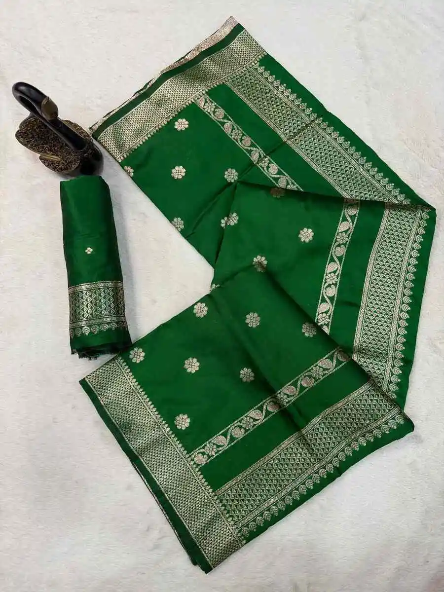 NEW ARRIVAL BANARASI SILK ZARI WOVEN WORK SAREE WITH UNSTITCHED BLOUSE GREEN
