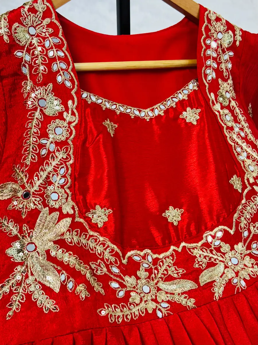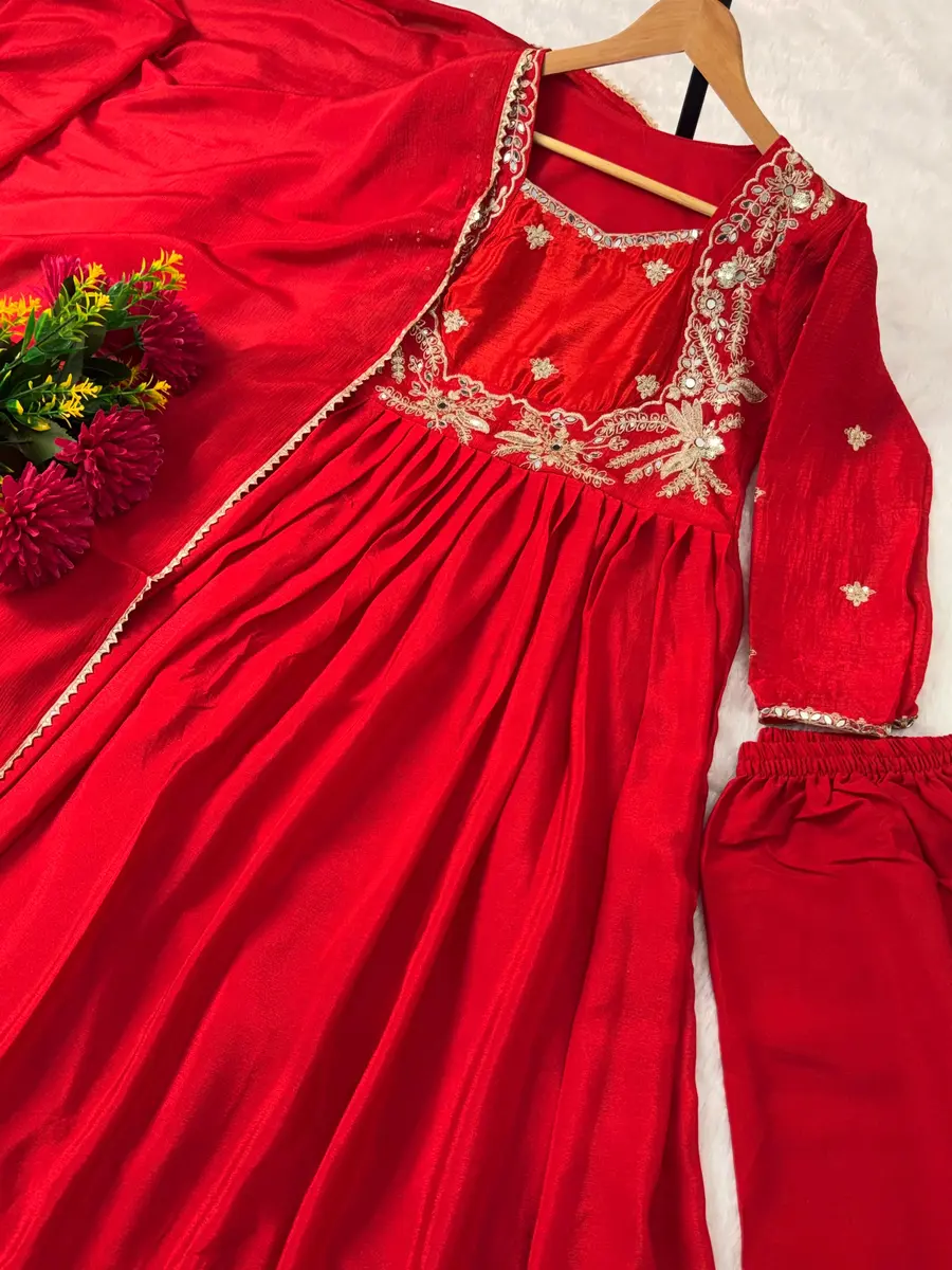 NEW ARRIVAL CHINON CODING WITH SEQUENCE AND REAL MIRROR WORK GOWN BOTTOM WITH DUPATTA RED