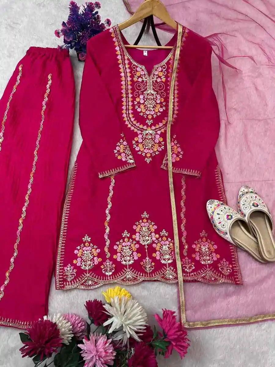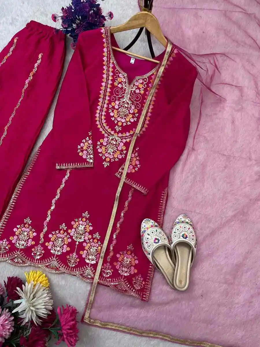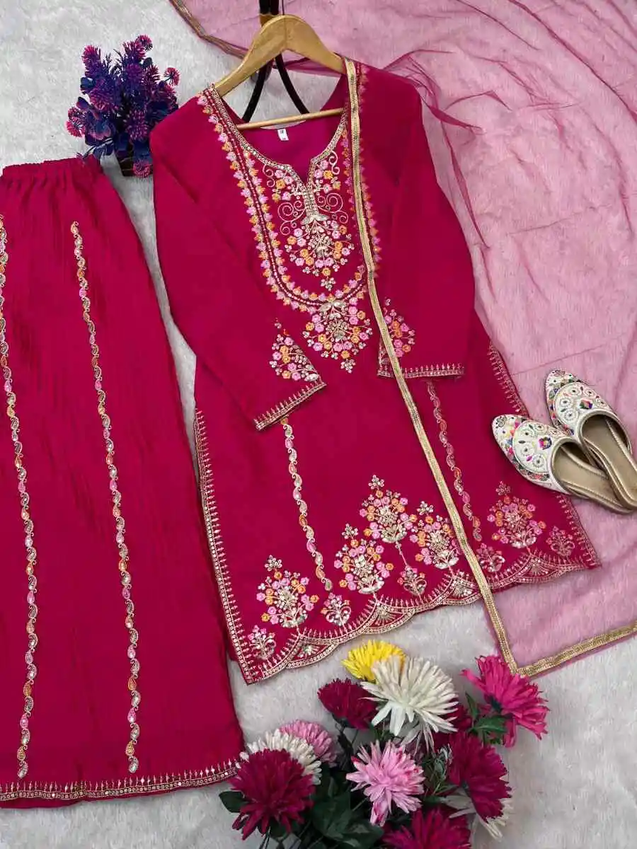 NEW ARRIVAL CHINON EMBROIDERY SEQUENCE WORK TOP PALAZZO WITH DUPATTA PINK
