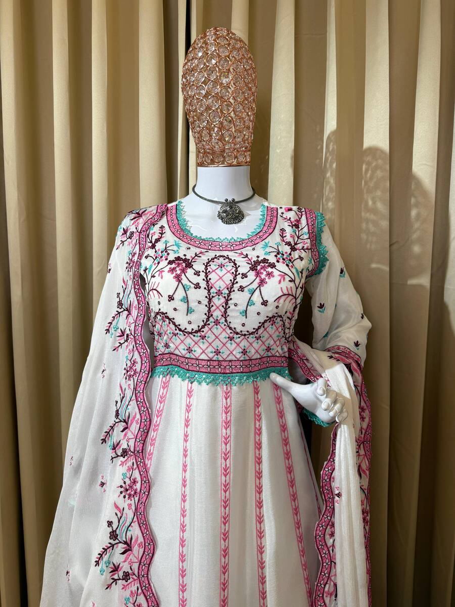 NEW ARRIVAL CHINON EMBROIDERY WORK GOWN WITH DUPATTA WHITE