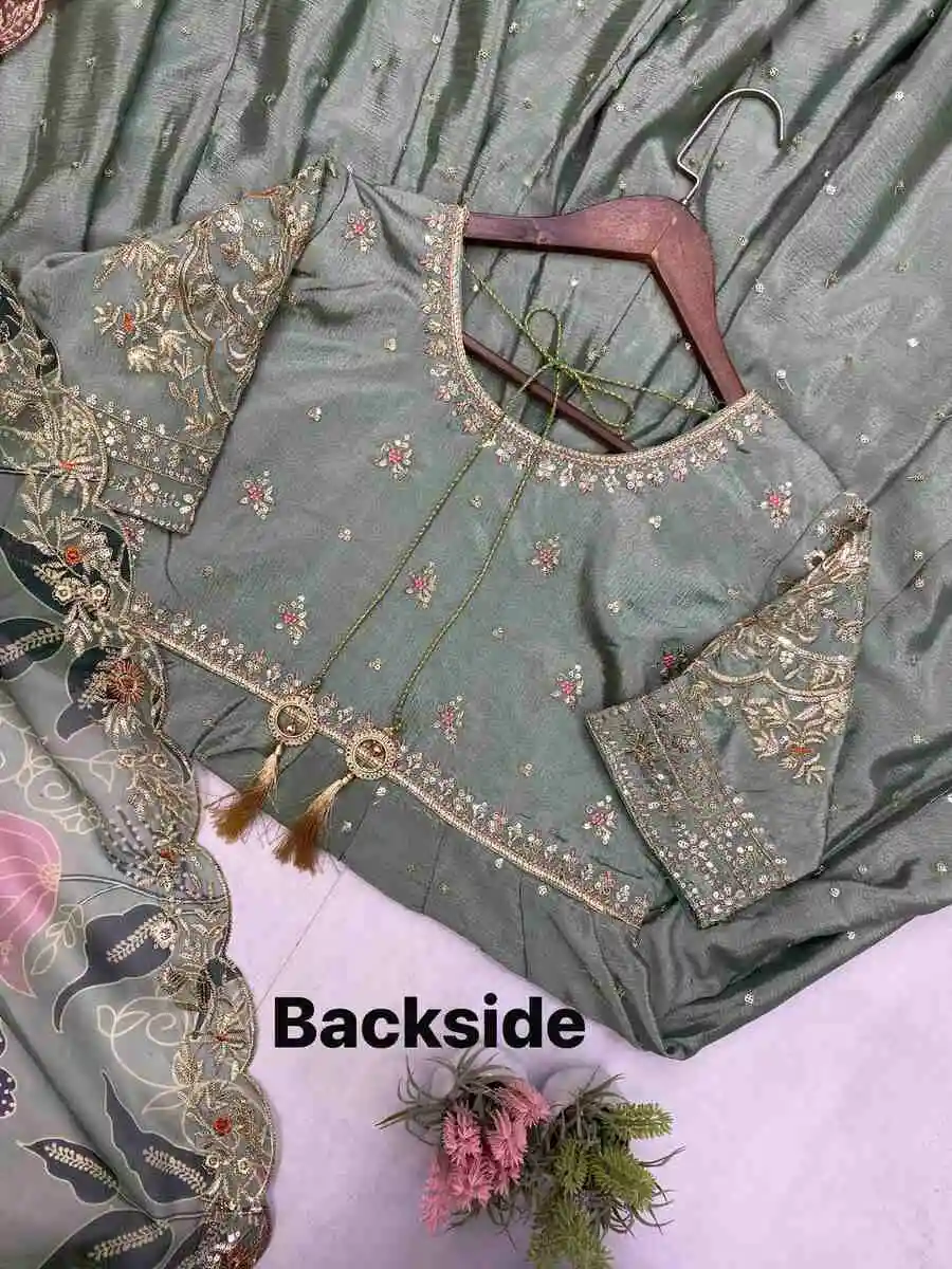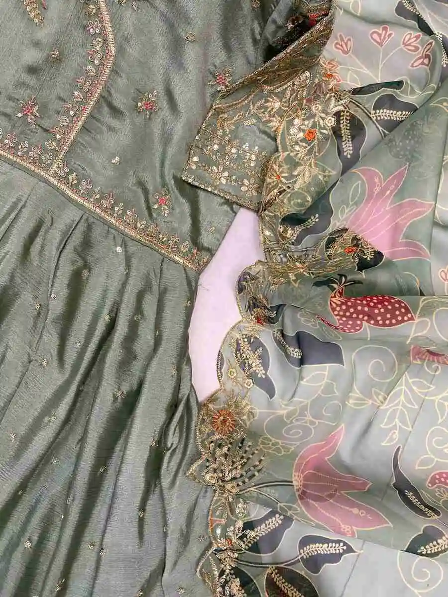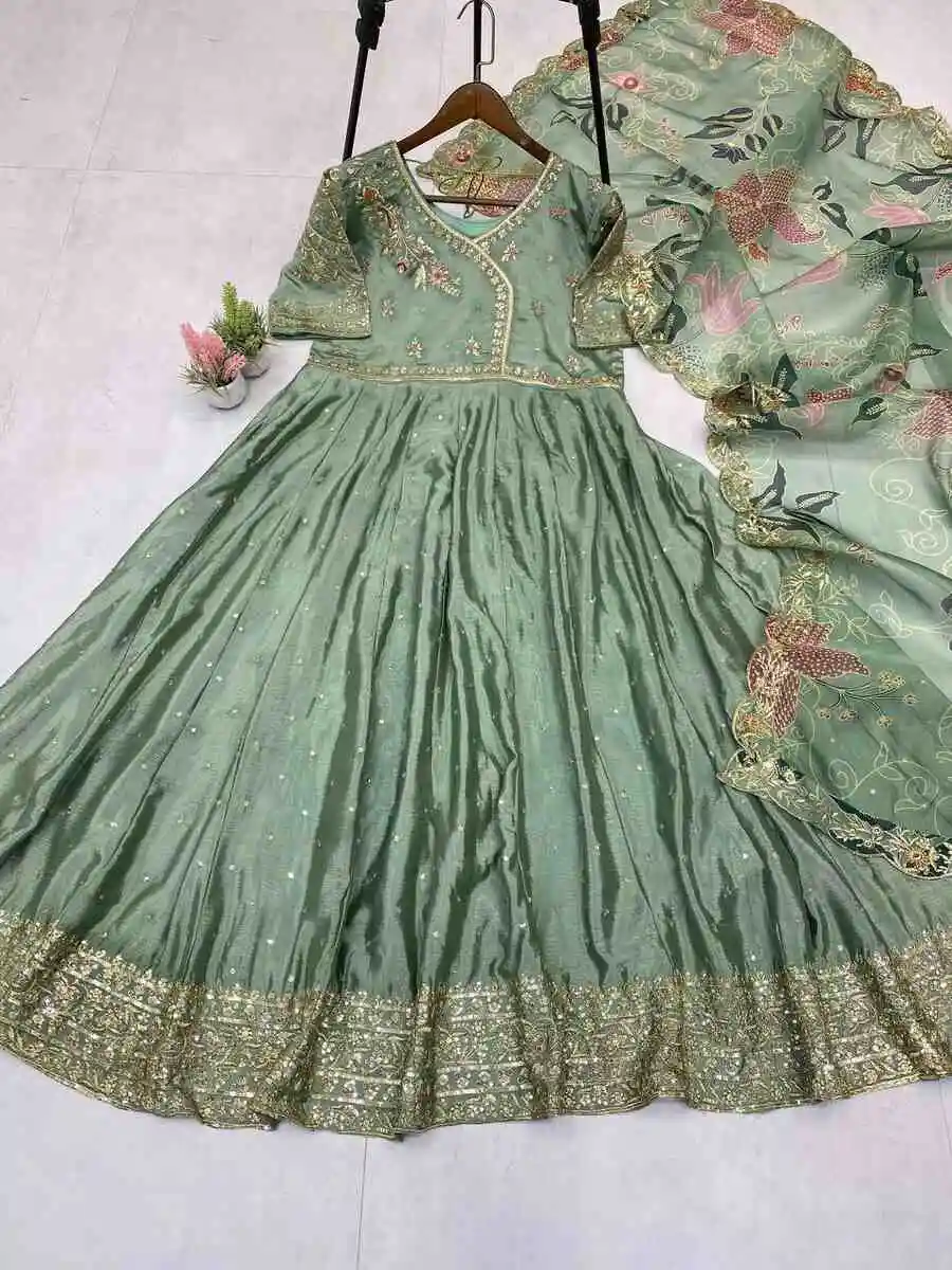 NEW ARRIVAL CHINON SILK EMBROIDERY WORK GOWN WITH DUPATTA MINT