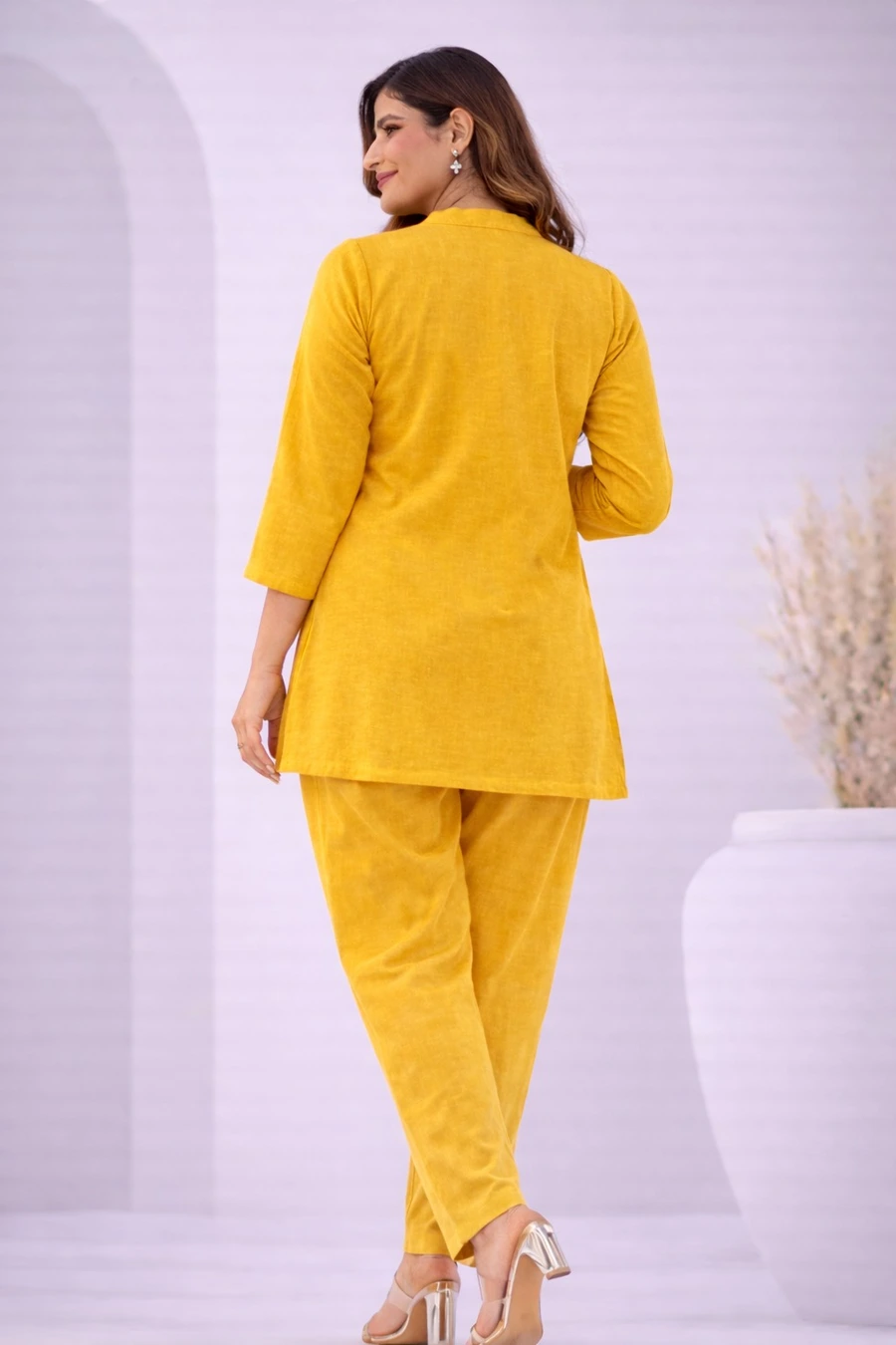 NEW ARRIVAL COTTON BLEND PLAIN CO-ORD SET YELLOW