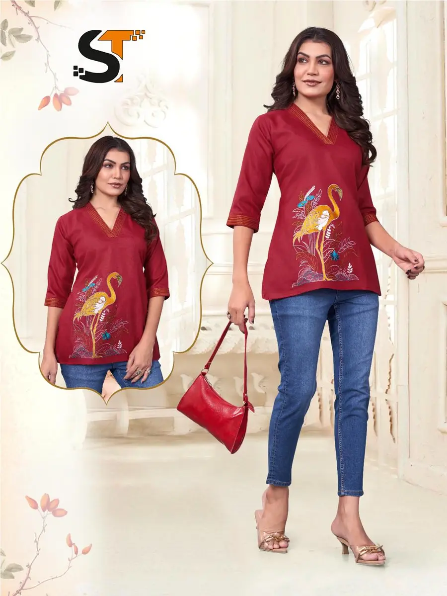 NEW ARRIVAL COTTON EMBROIDERY WORK ONLY TOP RED