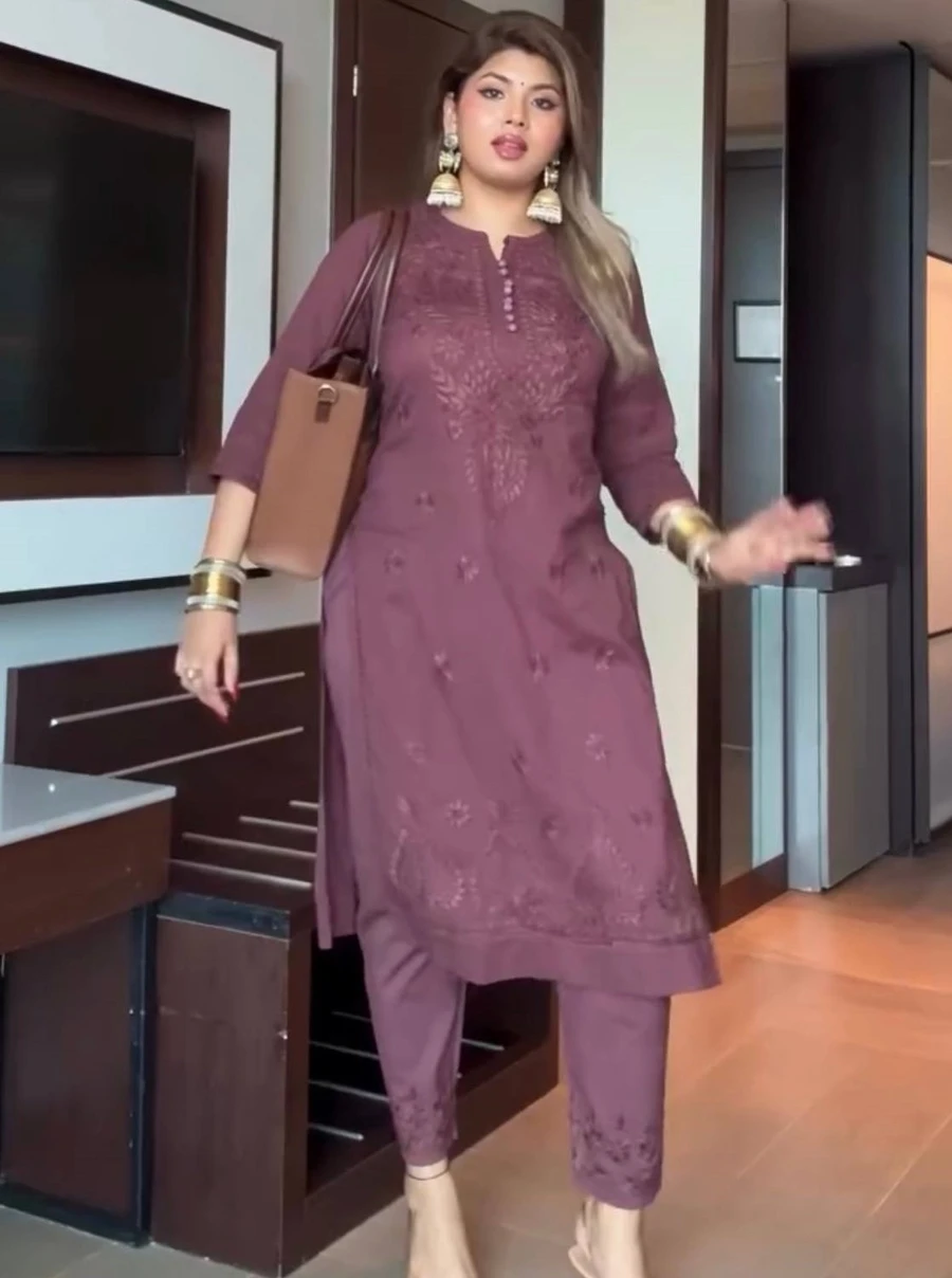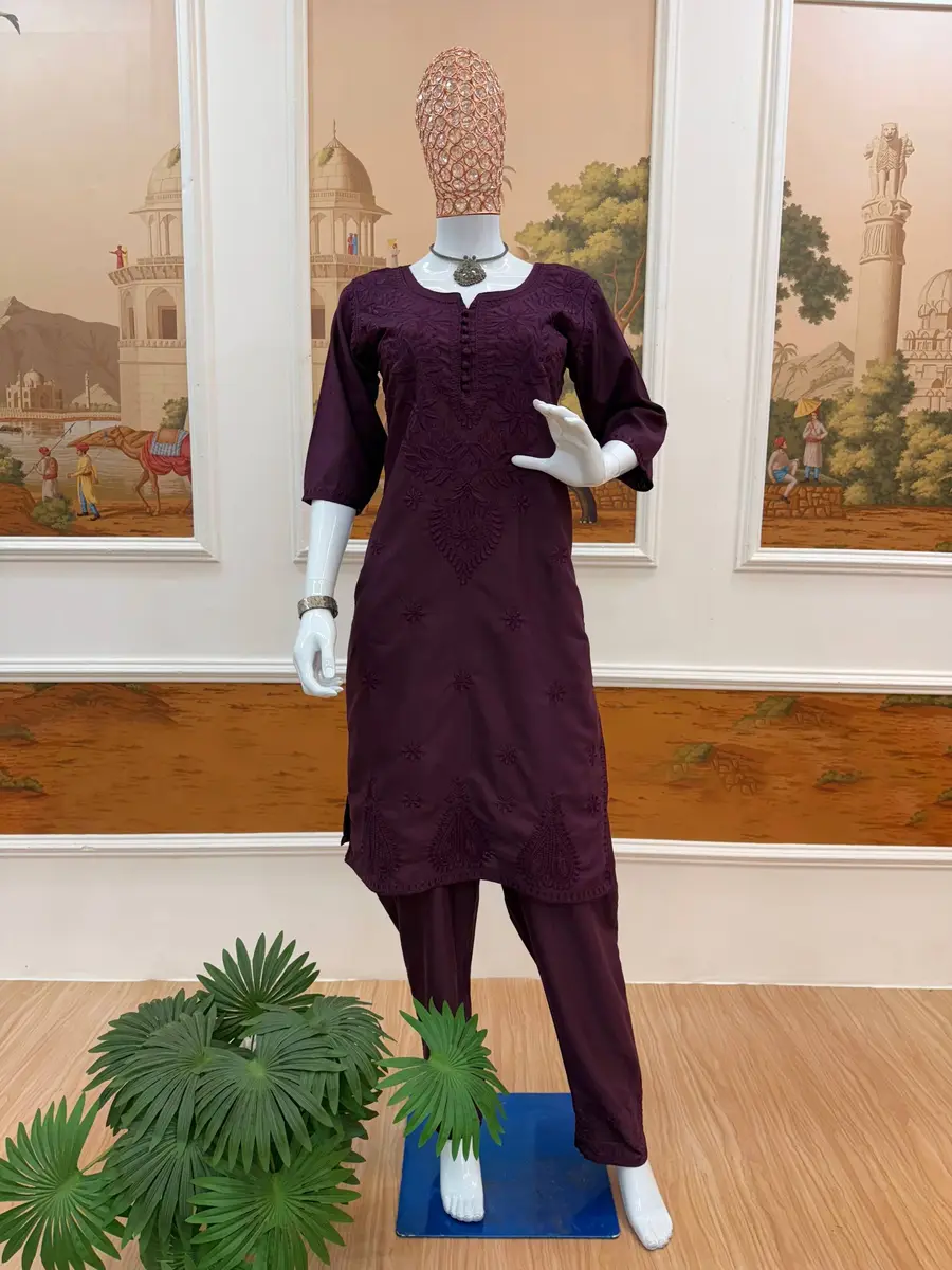 NEW ARRIVAL COTTON EMBROIDERY WORK TOP BOTTOM WINE
