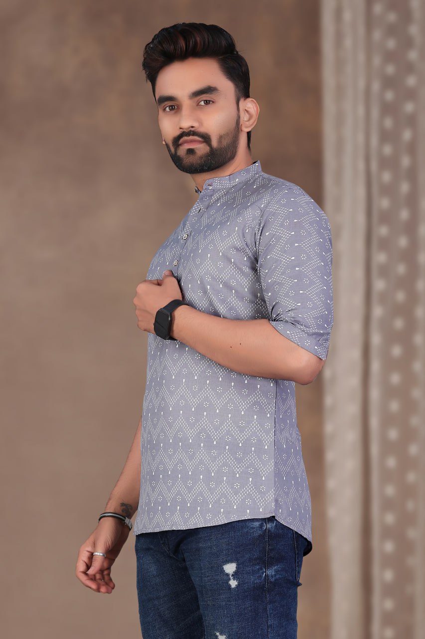 NEW ARRIVAL COTTON FOIL PRINT WITH BEAUTIFUL PATTERN WORK MEN’S SHIRT GREY