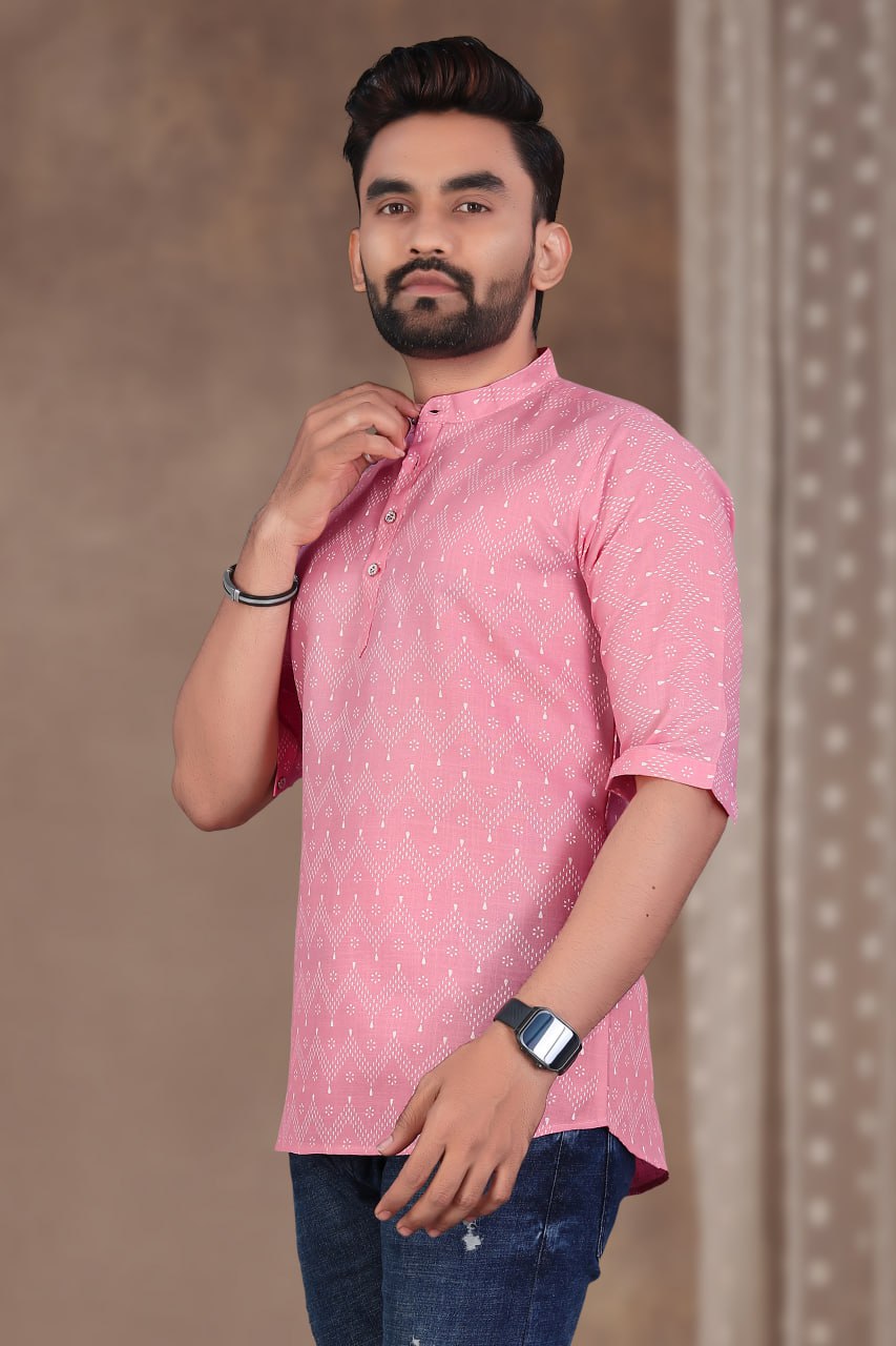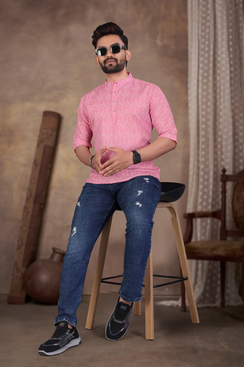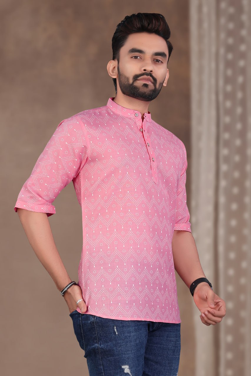 NEW ARRIVAL COTTON FOIL PRINT WITH BEAUTIFUL PATTERN WORK MEN’S SHIRT PINK